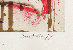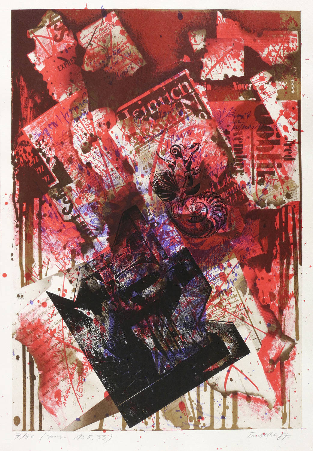 1987. Mischtechnik / Farbsiebdruck & Radierung, in Rot, Braun, Violett & Schwarz, auf weichem hellchamois Velin. – Originale Künstlergrafik, von Dieter Tucholke. – Auflage Exemplar Nr. 7/50. – 51,7 x 35,8 cm (Darstellung / Druckbild), 58 x 41 cm (Blatt).