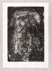 1987. Radierung / Reservage, geschabt, in Schwarz, auf schwerem Hahnemühle. – Originale Künstlergrafik, von Dieter Tucholke. – Auflage Exemplar Nr. 7/50. – 49,7 x 33,1 cm (Darstellung / Platte), 59 x 41 cm (Blatt).