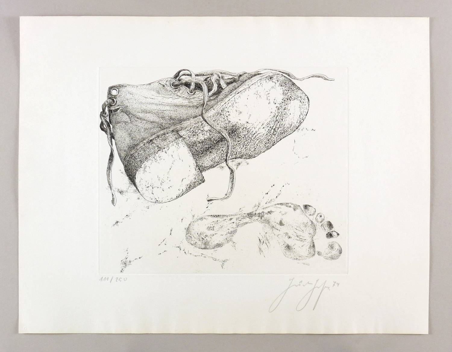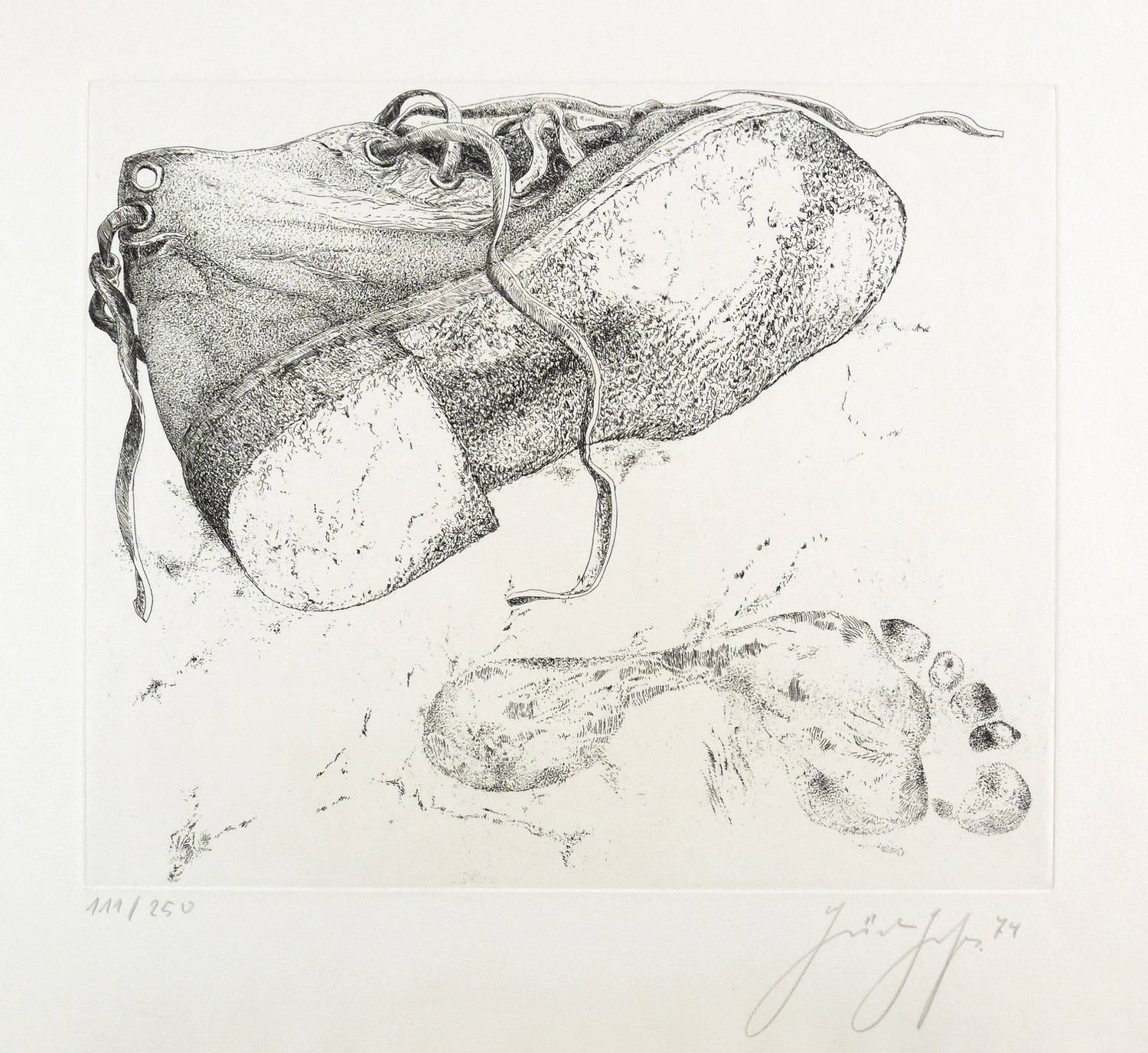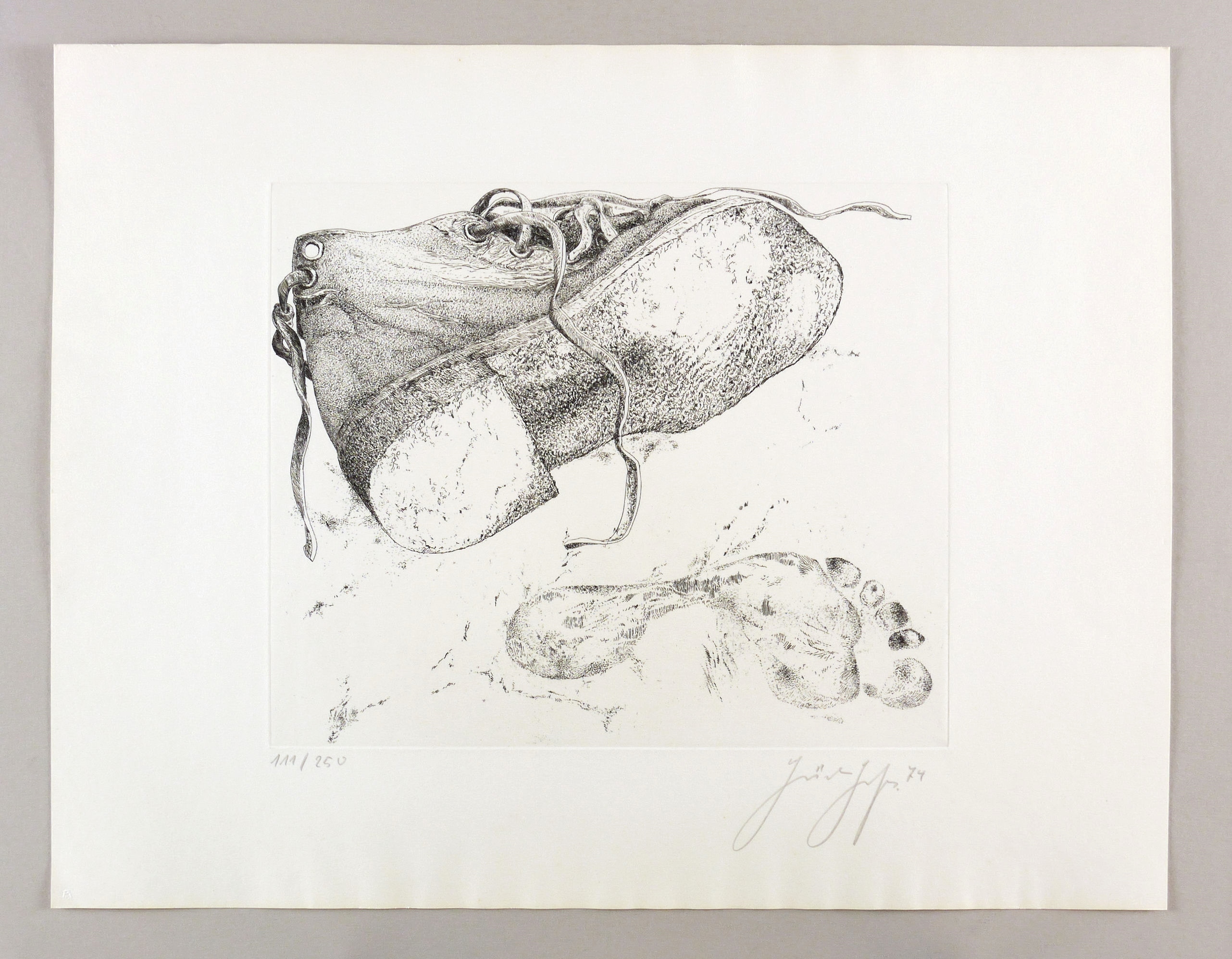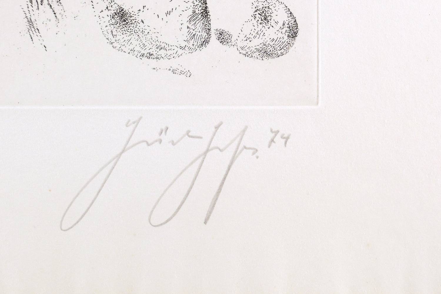 1974. Radierung / Strichätzung, in Schwarz, auf festem hellchamois Velin. – Originale Künstlergrafik, von Günter Grass. – Auflage Exemplar Nr. 111/250. – 32,8 x 39,3 cm (Darstellung / Platte), 50 x 65 cm (Blatt).