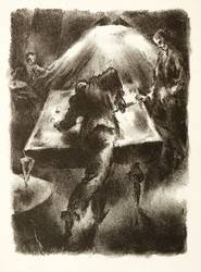 1919. Lithografie / Kreidelithografie, in Schwarz, auf gelblichem Maschinenpapier. – Originale Künstlergrafik, von Albert Hoppler. – 12,1 x 8,9 cm (Darstellung / Druckbild), 18 x 12 cm (Blatt).