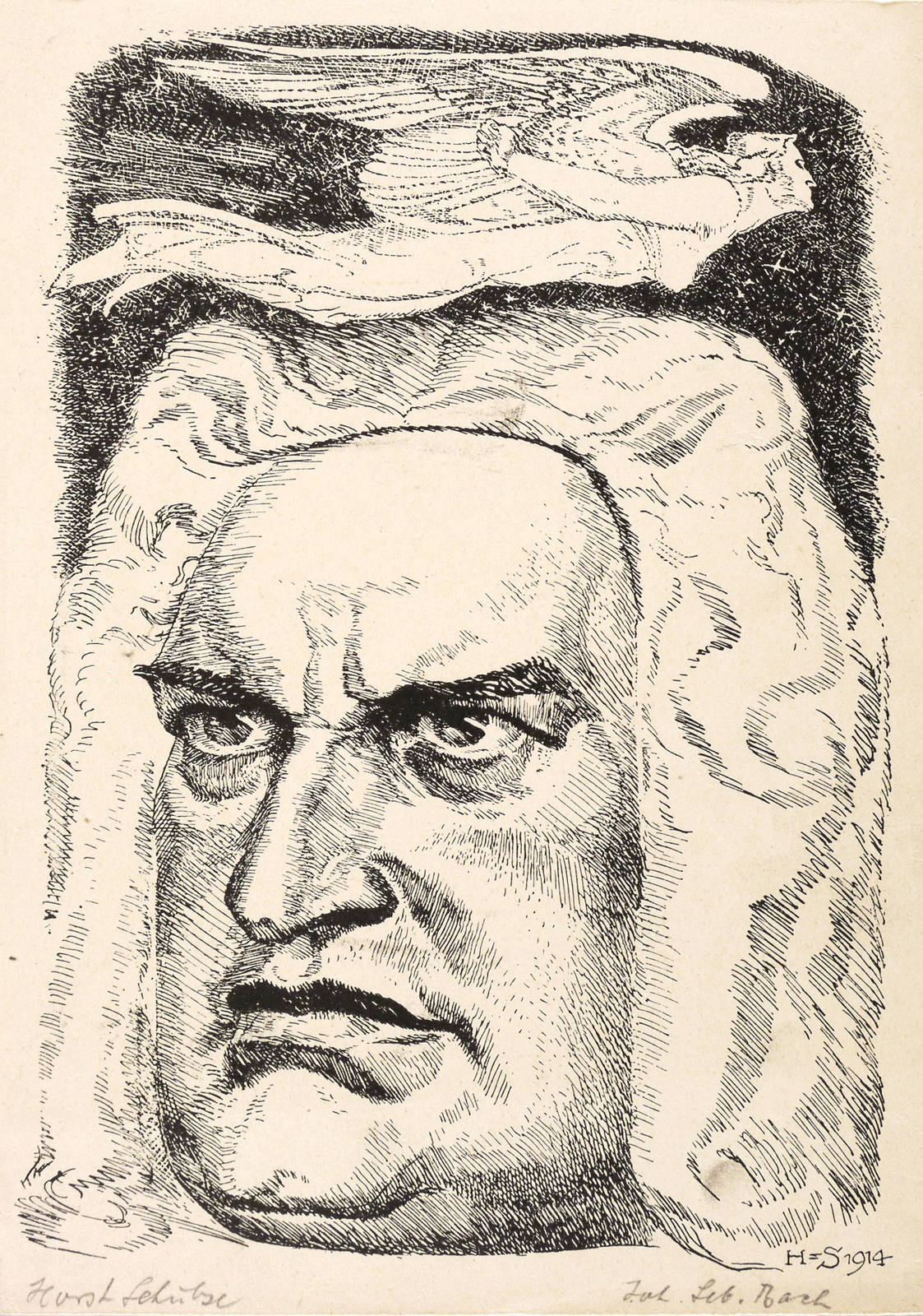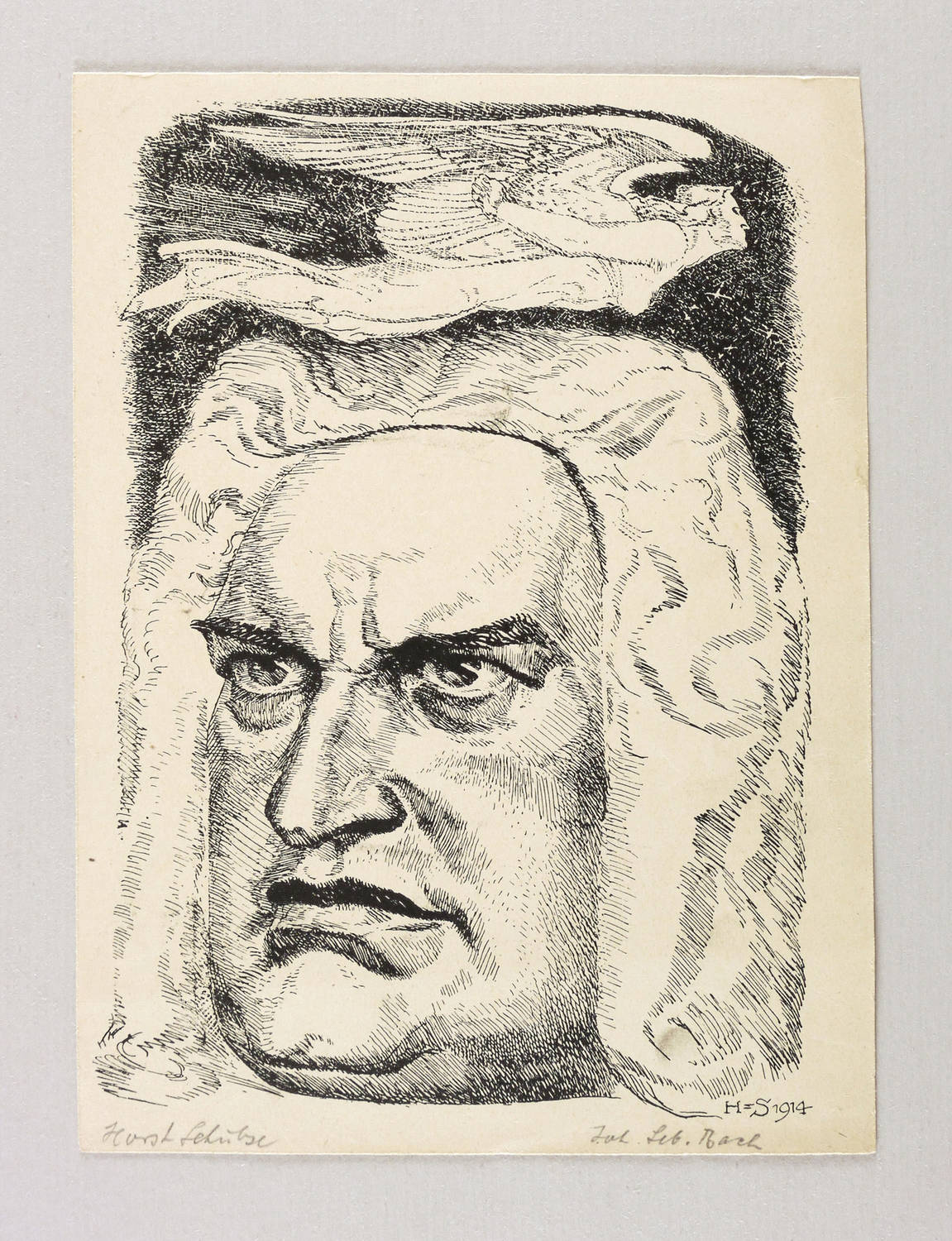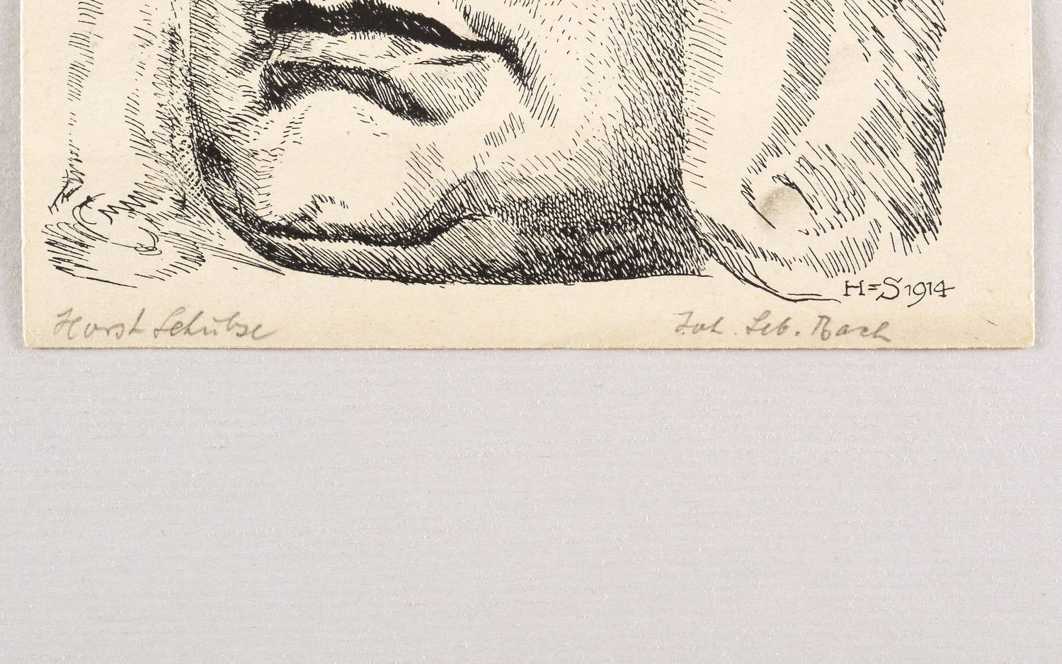 Links unten in Bleistift signiert: ″Horst Schulze″. Rechts bezeichnet: ″Joh. Seb. Bach″. Im Stein signiert und datiert unten rechts: ″H-S 1914″. – Im unteren Bereich schwach ausgeprägte Knickfalte. Insgesamt mäßig guter Zustand.