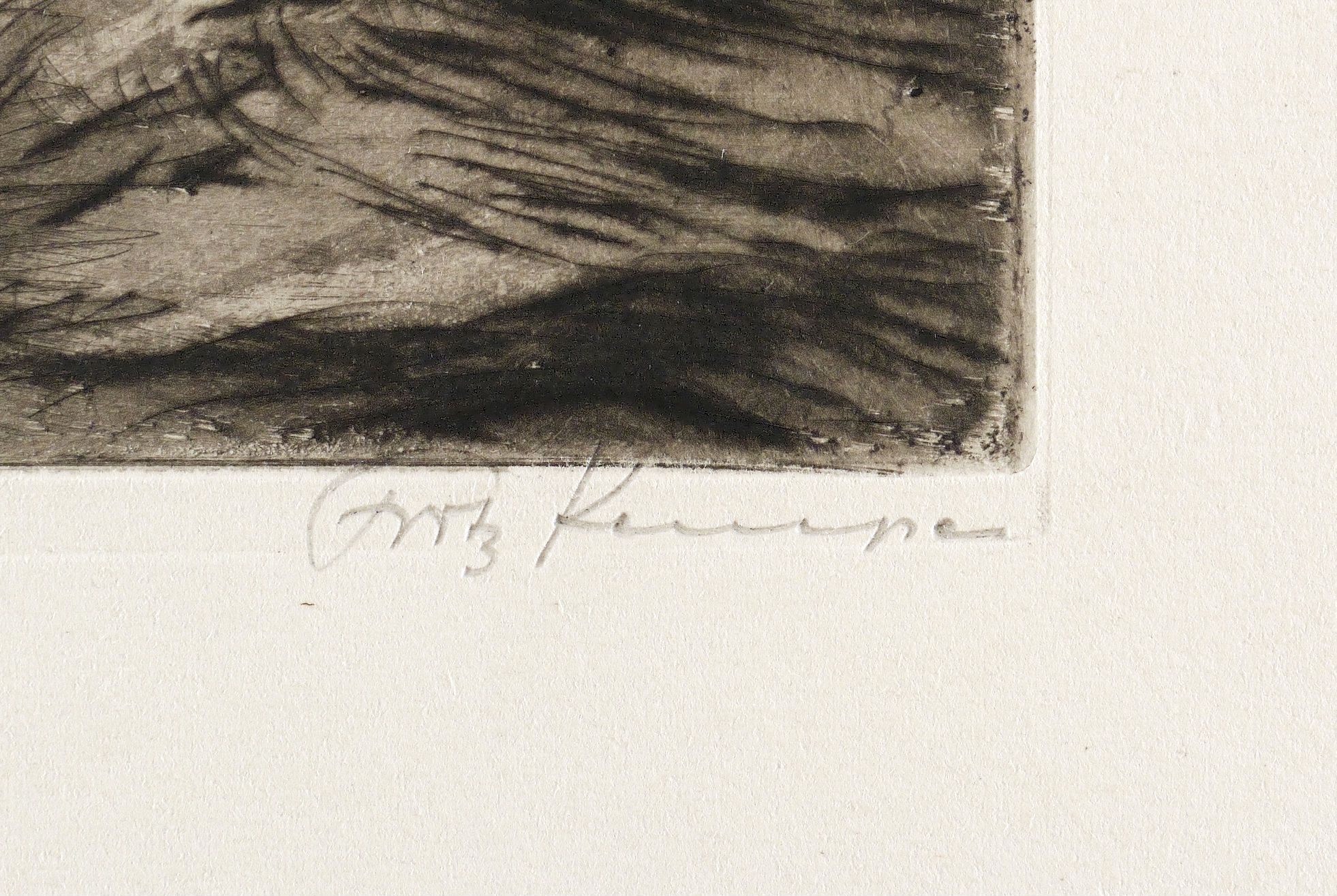 1930-1940. Radierung / Aquatinta & Strichätzung, in Schwarz, auf kräftigem hellgelbem Velin. – Originale Künstlergrafik, von Fritz Kempe. – 20,0 x 29,5 cm (Darstellung / Platte), 27 x 40 cm (Blatt).