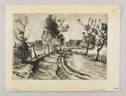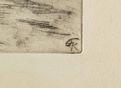 Nicht handsigniert. Am Blattrand rechts unten Monogramm-Stempel des Künstlers. In der Platte rechts unten zusätzlich Monogramm. – Unvollendeter Probedruck mit reichlichen Korrekturen udn Ergänzungen in Bleistift. Interessantes Dokument der Arbeitsweise des Künstlers bei der Herstellung einer Radierung. - Provenienz: aus dem künstlerischen Nachlass von Fritz Kempe. – Vor allem im Rand Erhaltungsmängel, fingerfleckig, kleiner Randriss oben rechts. Mangelhafter Zustand.
