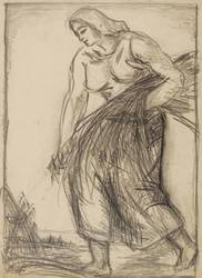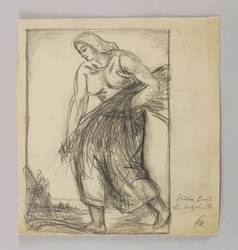 Rechts unten in Bleistift monogrammiert: ″FK.″ Dazu bezeichnet: ″Studie 'Ernte' für Holzschnitt″. – Entwurf für den Holzschnitt ″Ernte″. – Unscheinbares winziges Risschen im rechten Rand. Durchgängig berieben und knickspurig. Mäßig guter Zustand.