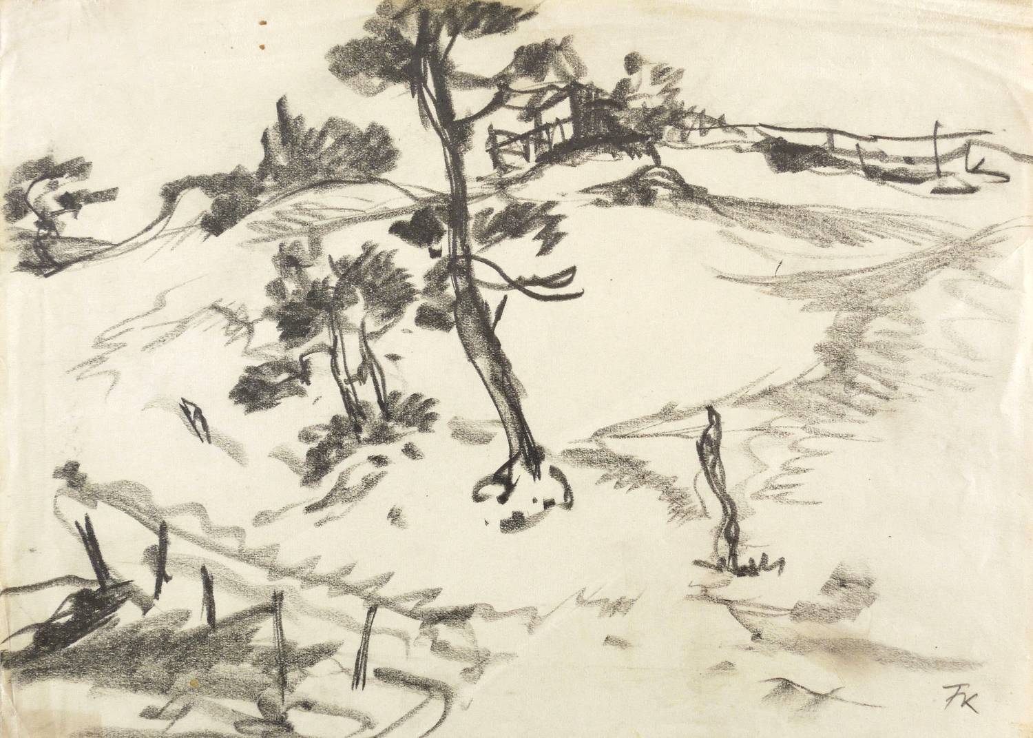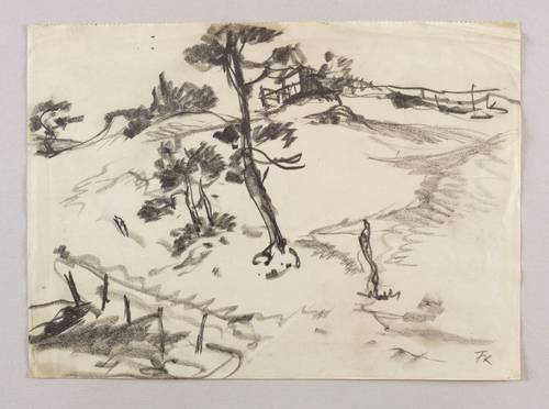Links unten in Bleistift monogrammiert: ″FK″. – Blatt aus einem Skizzenbuch. – Stärker knickspurig. Mangelhafter bis mäßig guter Zustand.
