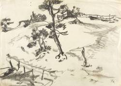 Um 1935. Zeichnung / Graphitzeichnung, auf leichtem gelblichem Maschinenpapier. – Von Fritz Kempe. – 19,6 x 27,0 cm (Darstellung / Blatt).