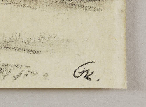 1943. Zeichnung / Kreide, in Schwarz, auf leichtem hellgelbem Velin. – Originale Künstlergrafik, von Fritz Kempe. – Unikat. – 19,3 x 28,5 cm (Darstellung / Blatt).