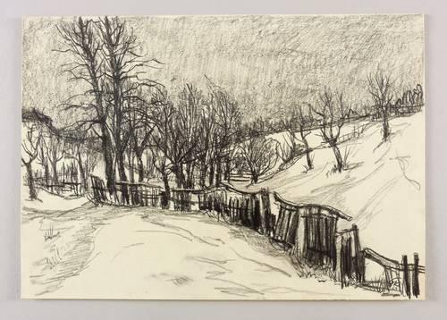 Rechts unten in Bleistift signiert und datiert: ″FK 63″. – Charakteristisches schönes Blatt aus dem Dresdner Spätwerk des sächsischen Künstlers. - Aus der Umgebung von Dresden, etwa dem Gebergrund bei Nickern. Mit Anmutung an die Landschaften und den Zeichenstil des Thüringer Künstlers Otto Paetz. – Sehr guter Zustand.