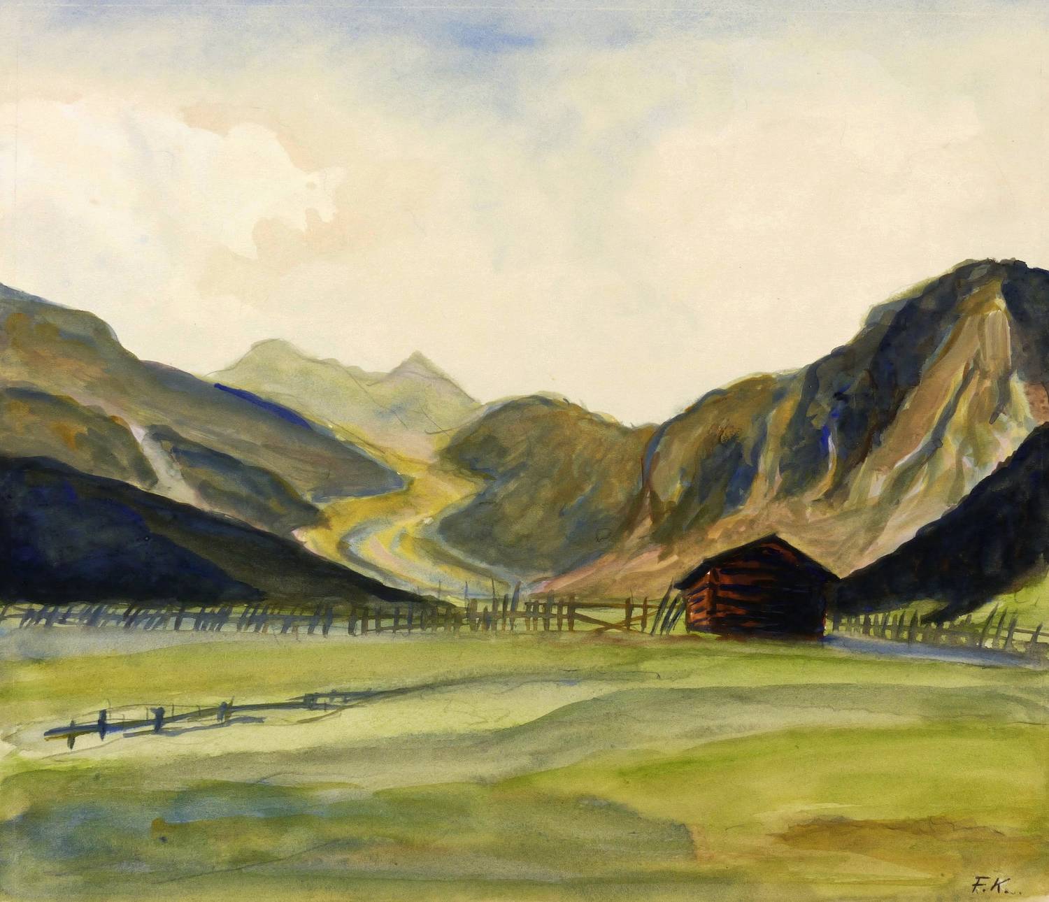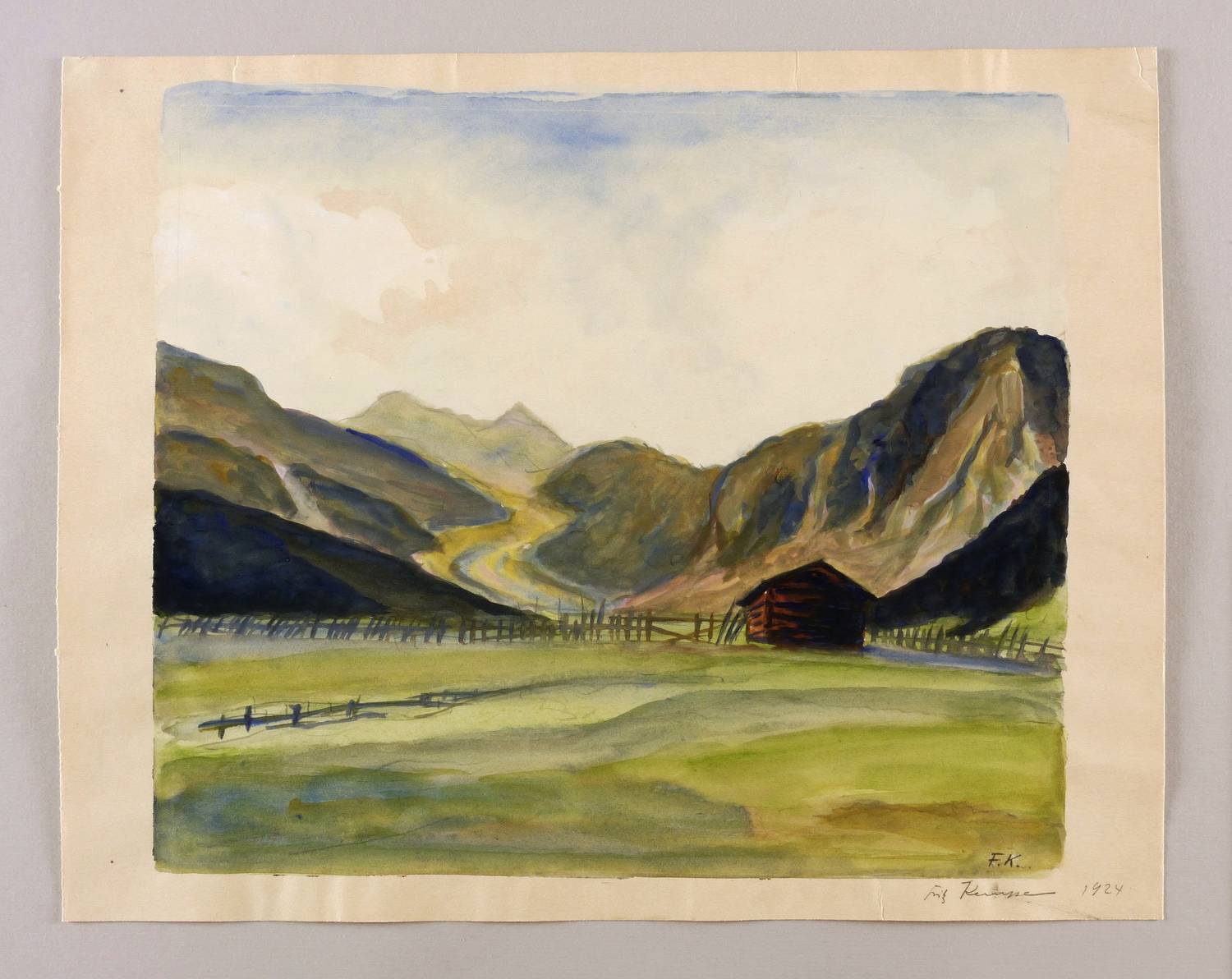 Links unten in Bleistift signiert: ″F.K.″ Darunter nochmals mit signiert und datiert: ″Fritz Kempe 1924″. – Provenienz: Nachlass der zweiten Ehefrau Martha (Marthel) Müller-Kempe, Dresden. – Sehr guter Zustand.