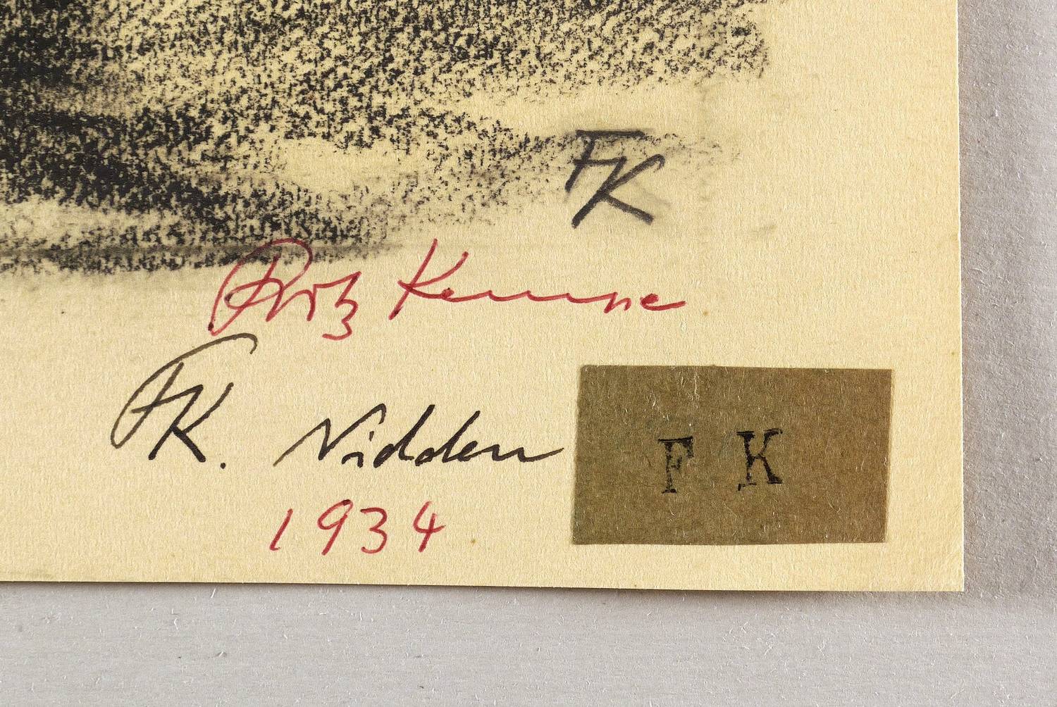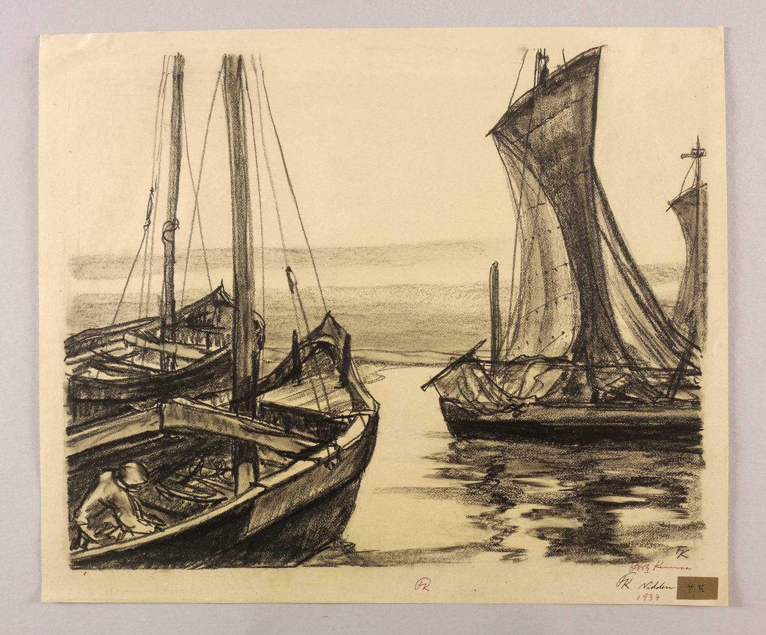 Rechts unten in rotem Kugelschreiber signiert und datiert: ″Fritz Kempe 1934″. Dazu in schwarzer Feder monogrammiert und bezeichnet: ″FK. Nidden″. Monogramm-Stempel. – Papier im oberen Rand stellenweise knittrig. Sonst tadellos. Noch guter Zustand.