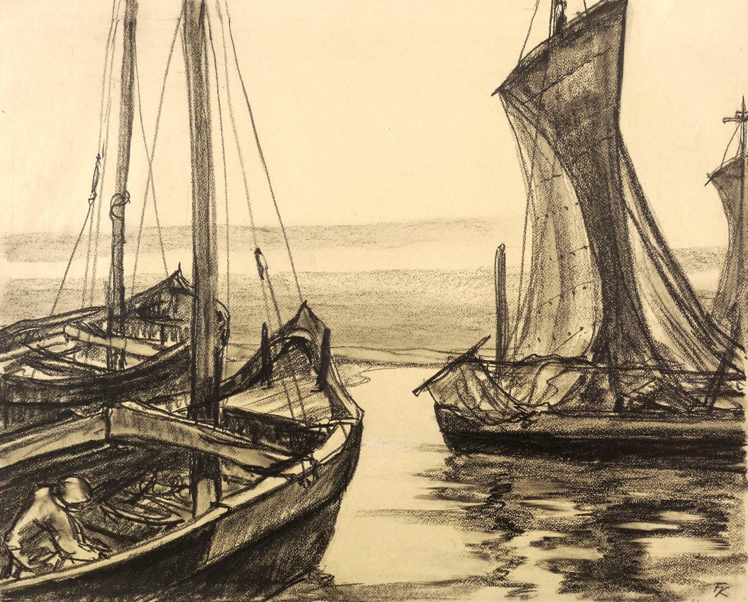 1934. Zeichnung / Graphitzeichnung, auf hartem gelbem Maschinenpapier. – Von Fritz Kempe. – 38,1 x 46,7 cm (Darstellung), 43 x 51 cm (Blatt).