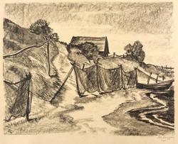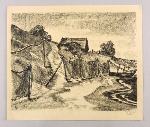 Kempe, Fritz. – „Trocknende Fischernetze am Strand von Nidden”.