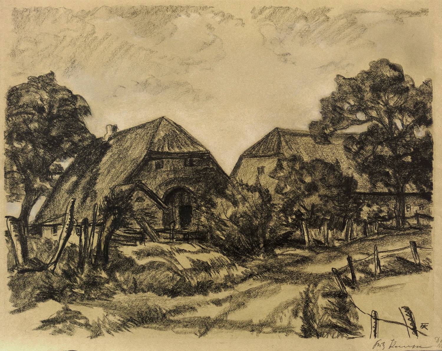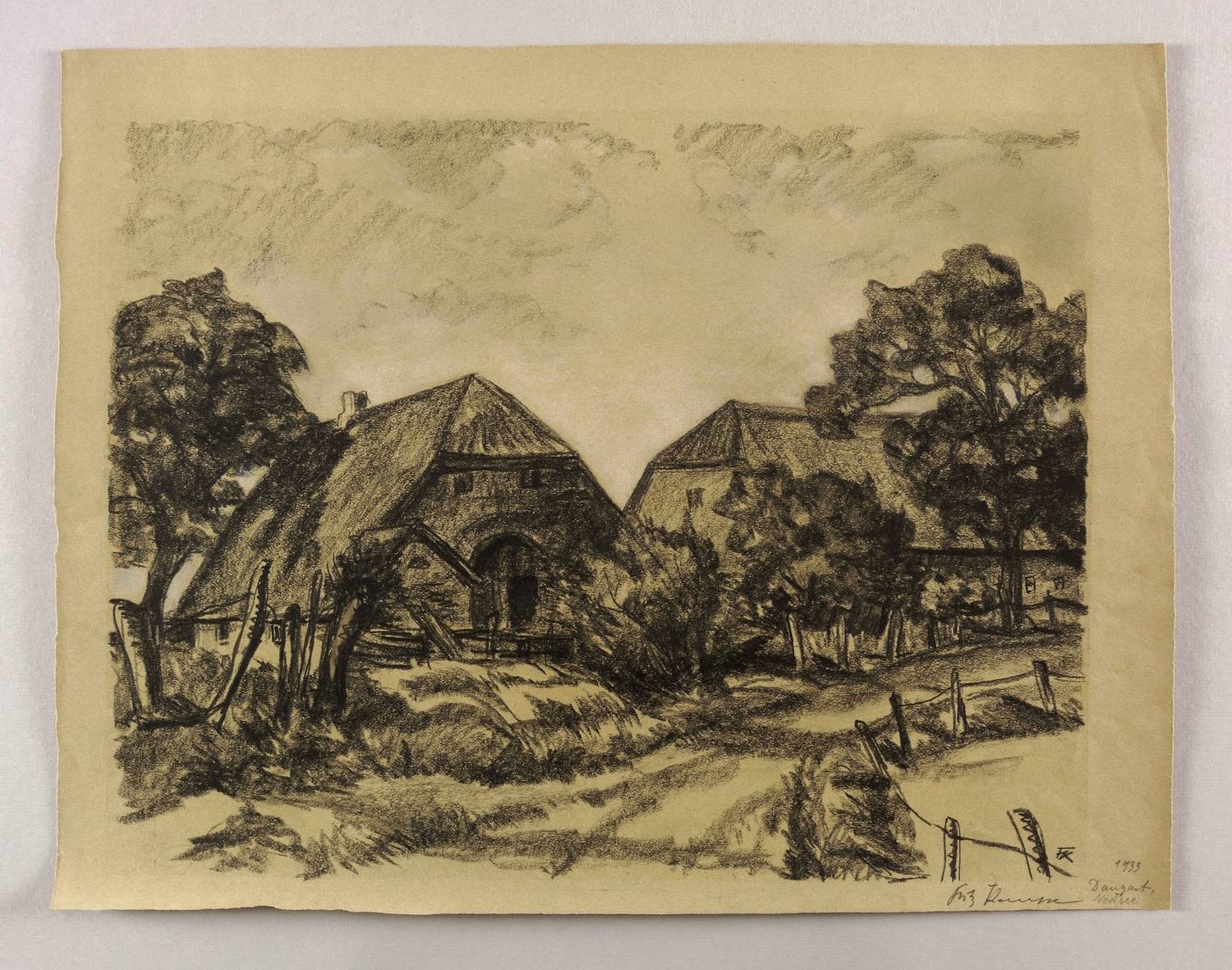1933. Zeichnung / Graphitzeichnung, auf festem hellbraunem Velin. – Von Fritz Kempe. – 36,5 x 47,0 cm (Darstellung), 42 x 54 cm (Blatt).