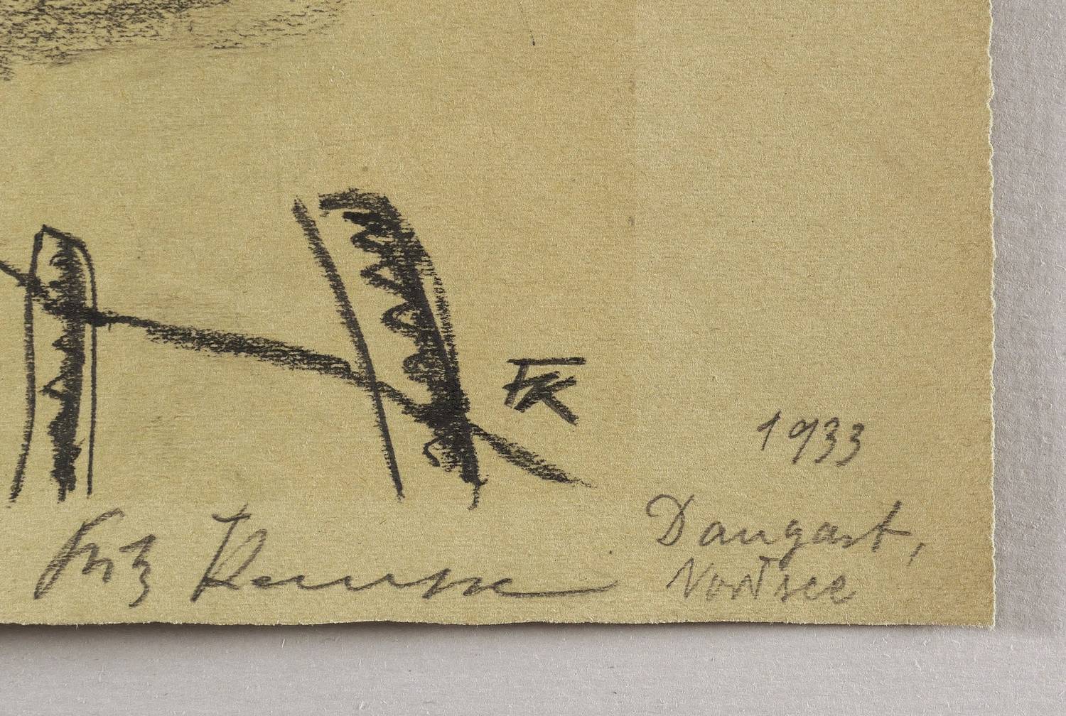 Rechts unten in Bleistift monogrammiert: ″FK″. Dazu weiter signiert, bezeichnet und datiert: ″Fritz Kempe 1933 Dangast. Nordsee″. – Ohne Tadel erhalten. Sehr guter Zustand.