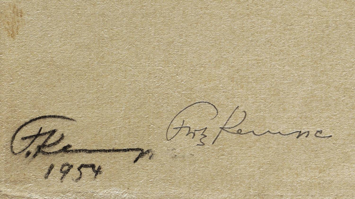 Links unten in schwarzer Kreide signiert und datiert: ″F. Kempe 1954″. Darüber in Bleistift nochmals signiert: ″Fritz Kempe″. – Leichte Randmängel. Insgesamt guter Zustand.