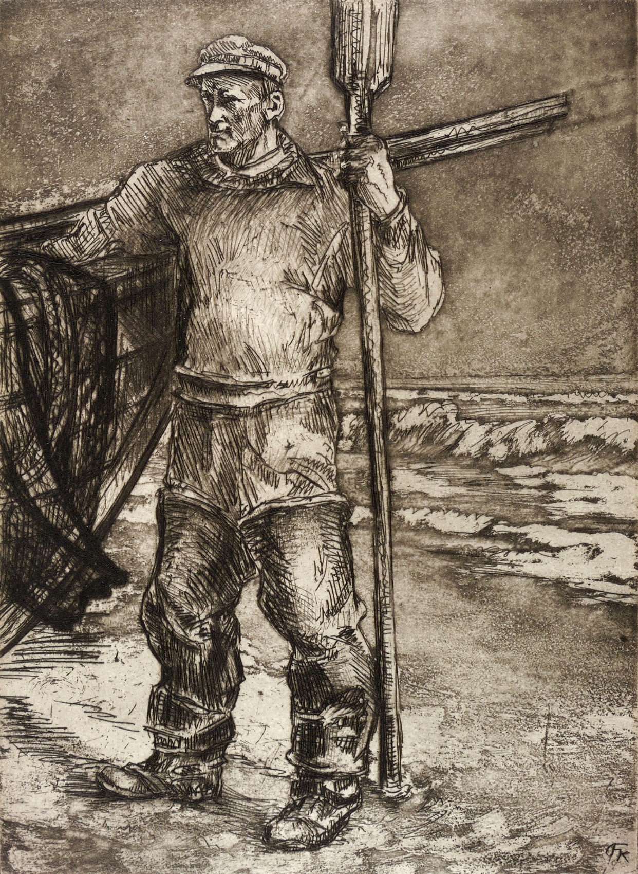 Nicht handsigniert. In der Platte rechts unten Monogramm: ″FK″. Verso in Bleistift bezeichnet: ″Fehldruck″. – Auf die Plattenkante beschnitten. Sonst aber immerhin mäßig guter Zustand.