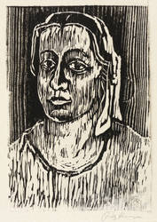 1925-1930. Holzschnitt, in Schwarz, auf rauem gelblichem Japanbütten. – Originale Künstlergrafik, von Fritz Kempe. – 22,0 x 15,3 cm (Darstellung), 23,8 x 15,3 cm (Blatt), 26 x 22 cm (Trägerkarton).