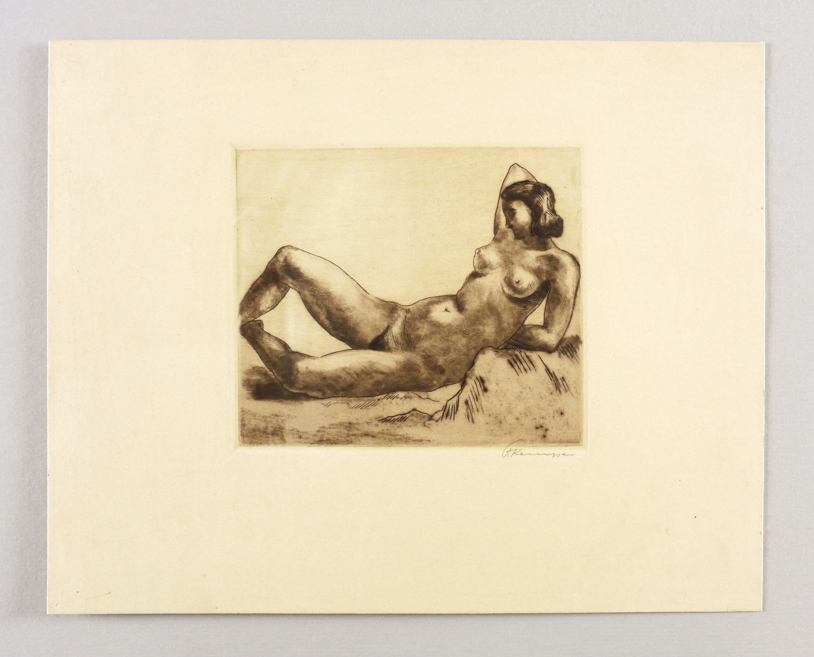 Kempe, Fritz. – „Liegender Akt (Am Strand)”.