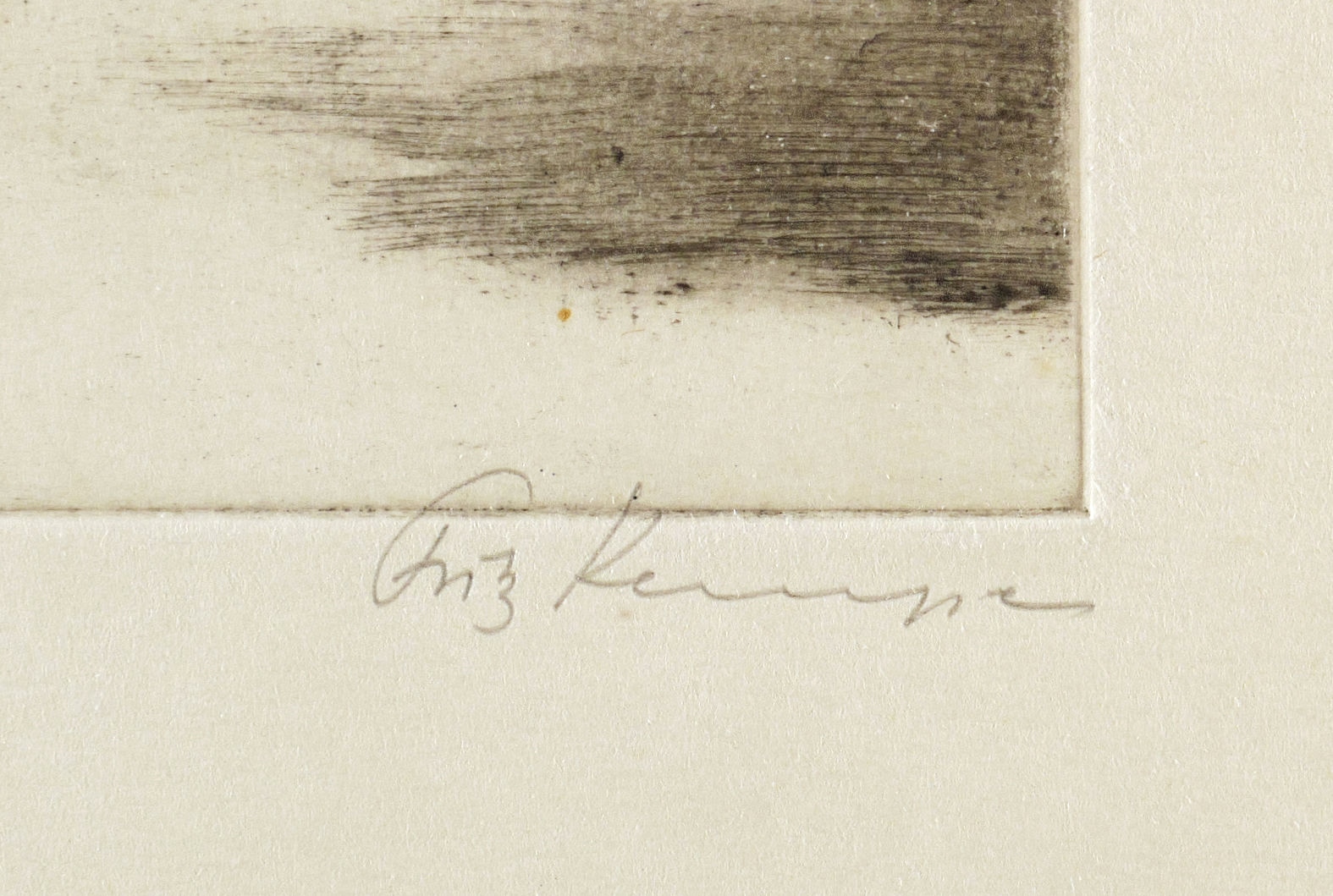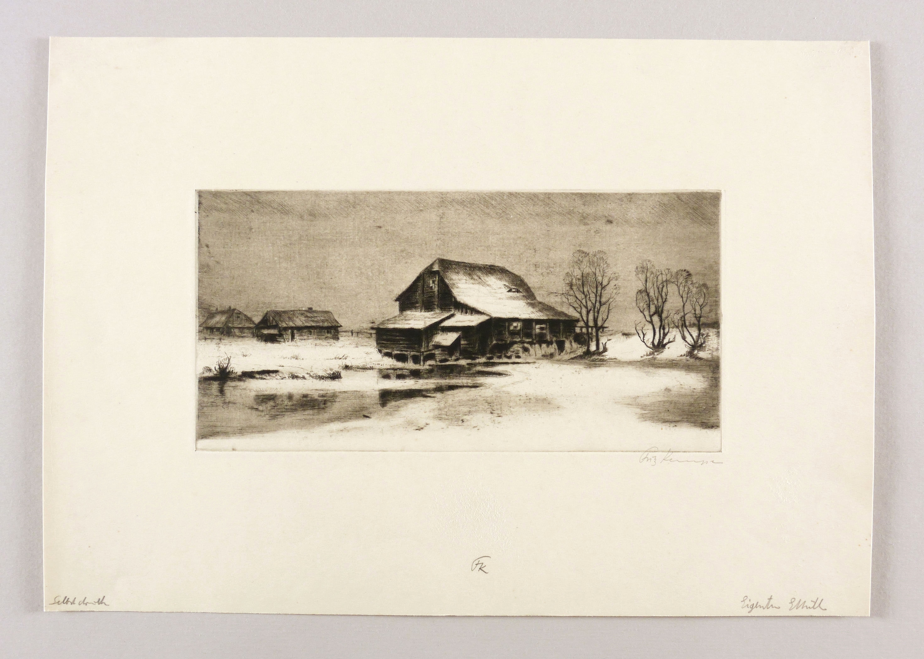 Rechts unten in Bleistift signiert: ″Fritz Kempe″. Am Blattrand unten monogrammiert: ″FK″. In der Blattecke links unten bezeichnet: ″Selbstdruck″. Rechts gegenüber Besitzvermerk: ″Eigentum E. Müller″. – Aus dem Nachlass des Künstlers. – Tadellos erhalten. Sehr guter Zustand.