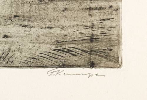 1943-1945. Radierung / Kaltnadel, mit Plattenton, in Schwarz, auf festem hellgelbem Velin. – Originale Künstlergrafik, von Fritz Kempe. – 18,8 x 24,6 cm (Darstellung / Platte), 25 x 29 cm (Blatt).