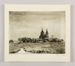 Rechts unten in Bleistift signiert: ″F. Kempe″. Links betitelt: ″Aus Russland″. – Eine sehr ähnliche, vielleicht aber nicht identische Holzkirche russischen Stils, die 1866 erbaute römisch-katholische Kirche Konstantin und Alena in Waloschyn (Валожын), nordöstlich von Minsk. – Sehr guter Zustand.