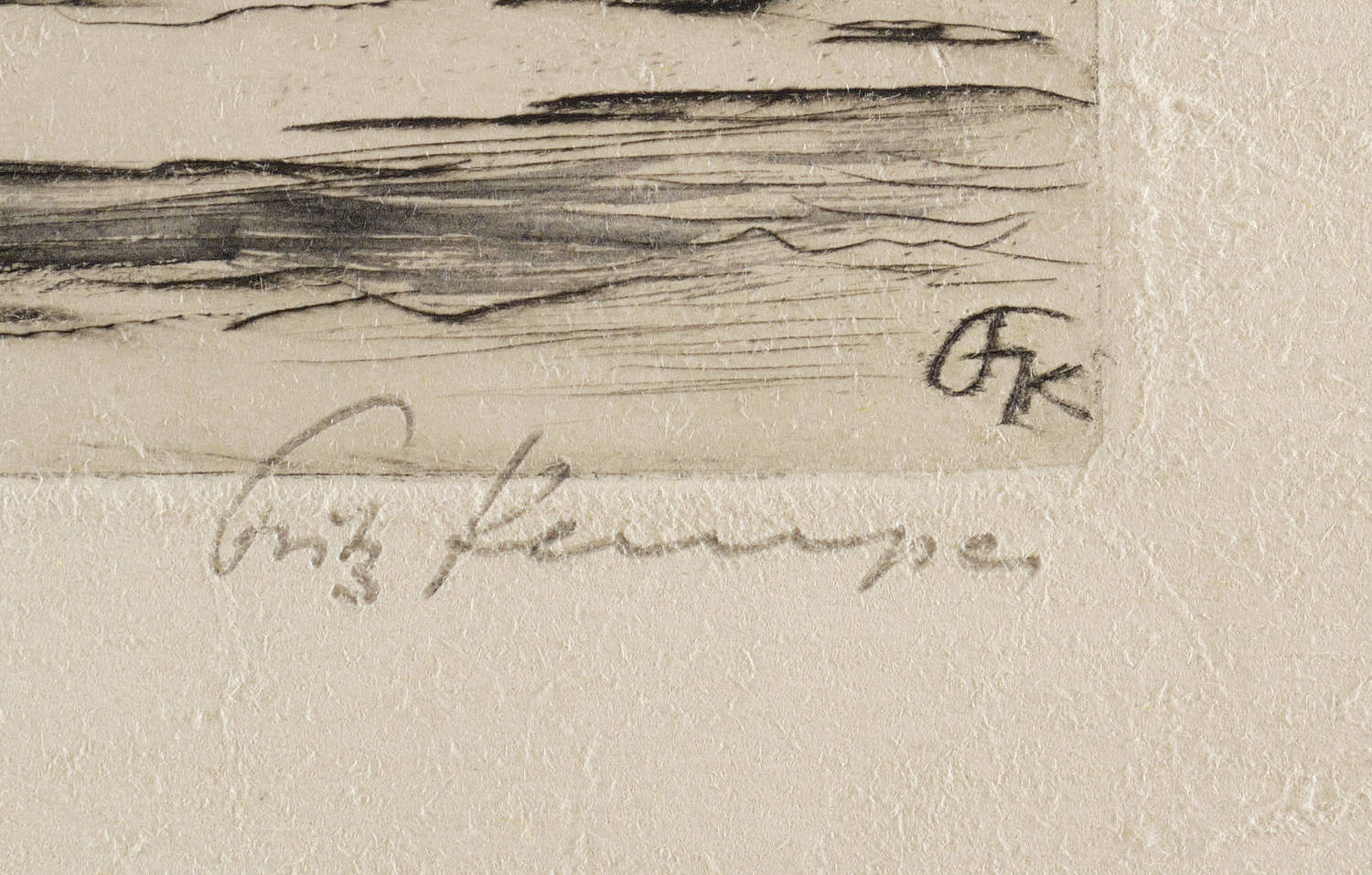 Rechts unten in Bleistift signiert: ″Fritz Kempe″. Am Blattrand unten bezeichnet und monogrammiert: ″Selbstdruck / FK″. In der Platte rechts unten nochmals Monogramm. – Schönes Blatt. – Sehr guter Zustand.