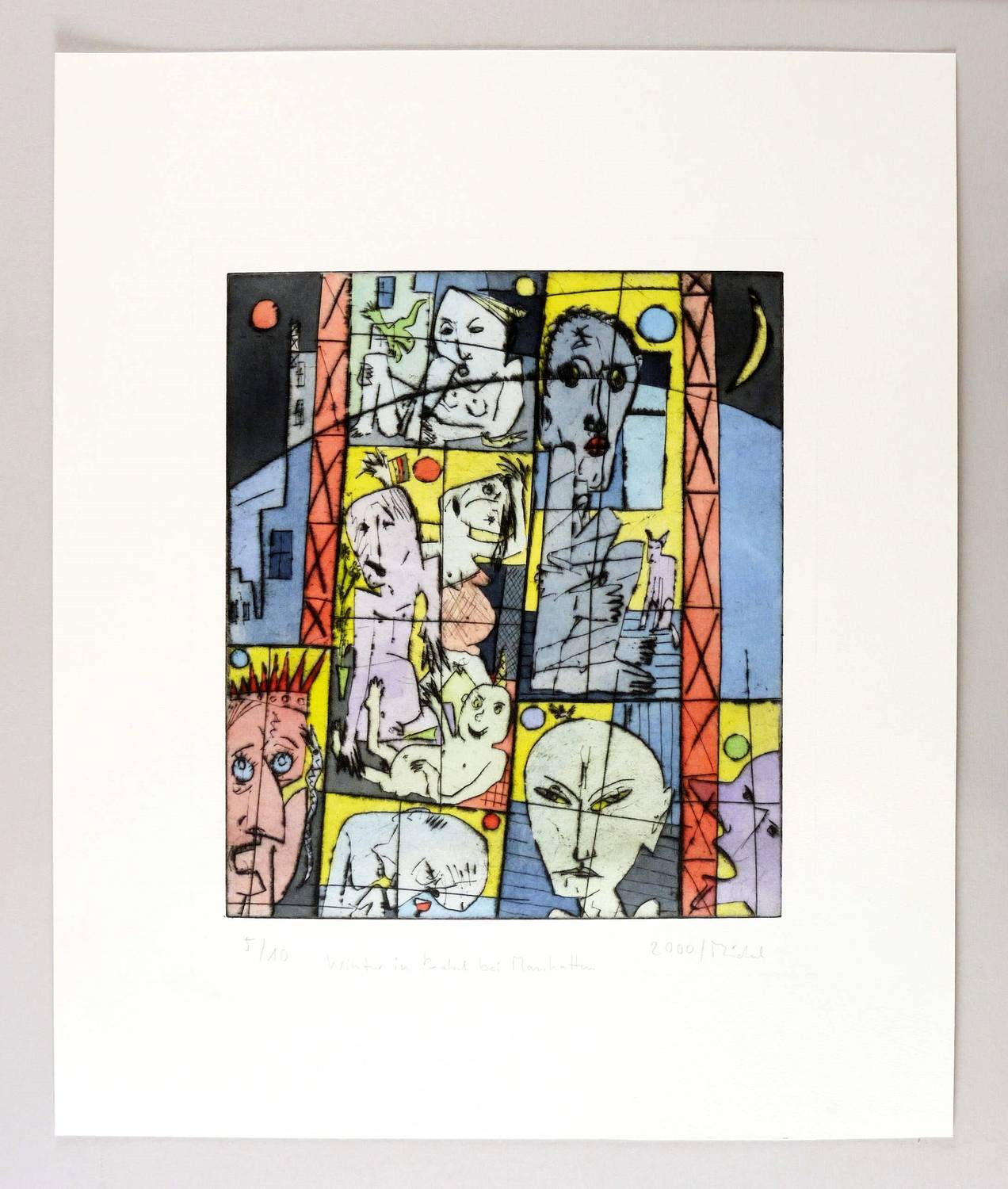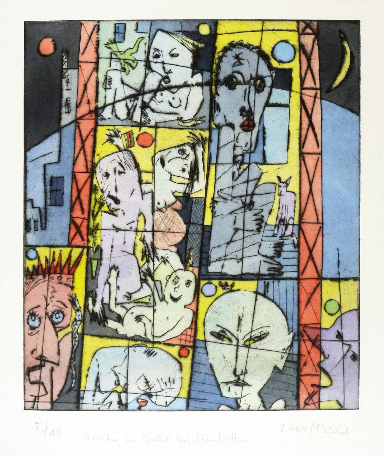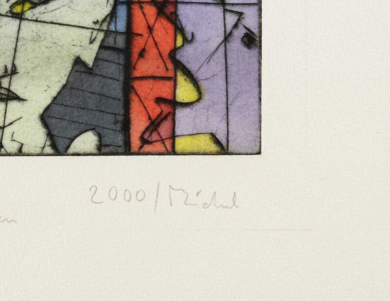 2000. Farbradierung / Aquatinta & Kaltnadel, in 6 Farben, auf gehämmertem hellchamois Velinkarton. – Von Bernhard Michel. – Auflage Exemplar Nr. 5/10. – 34,8 x 30,0 cm (Darstellung / Platte), 59 x 49 cm (Blatt).