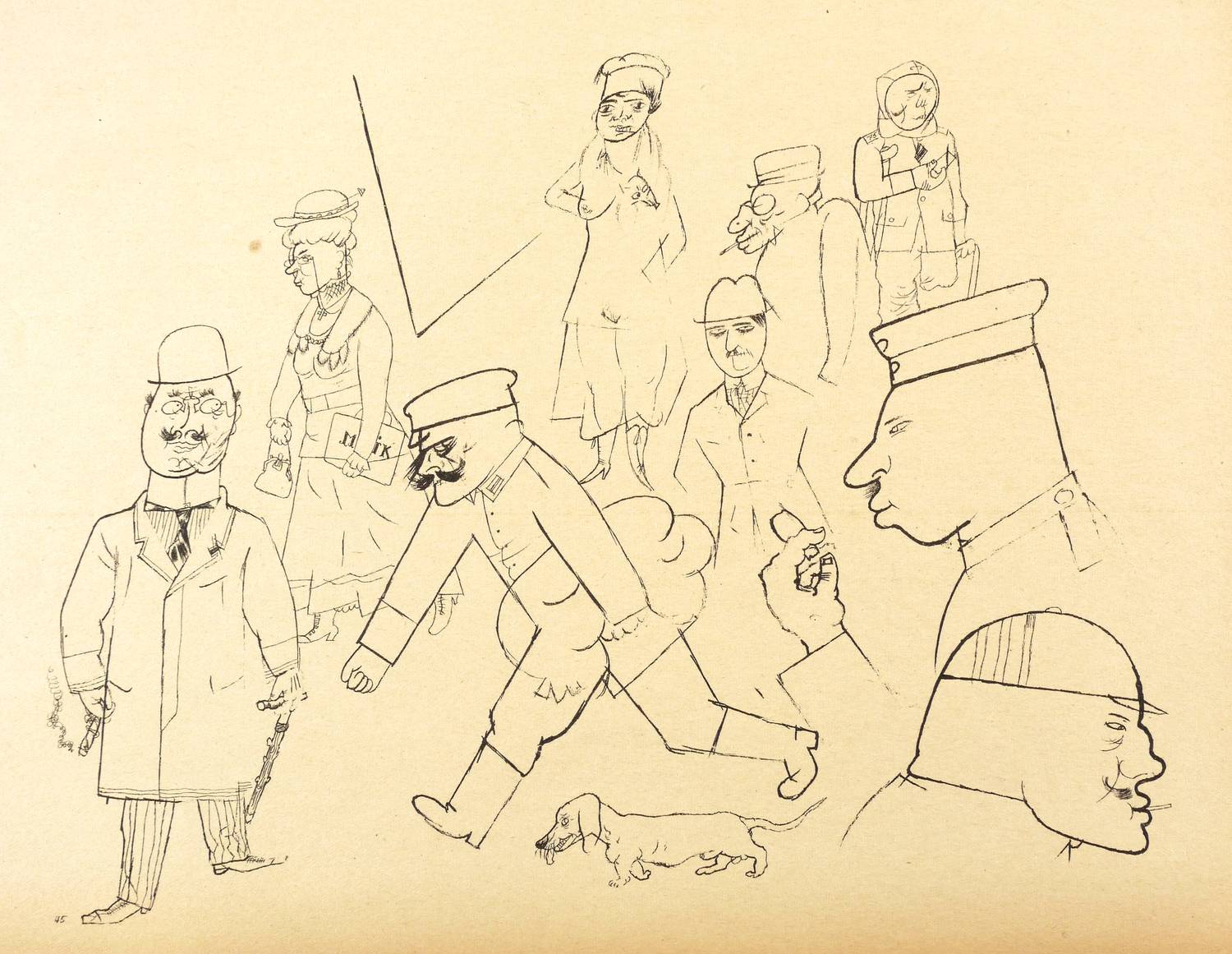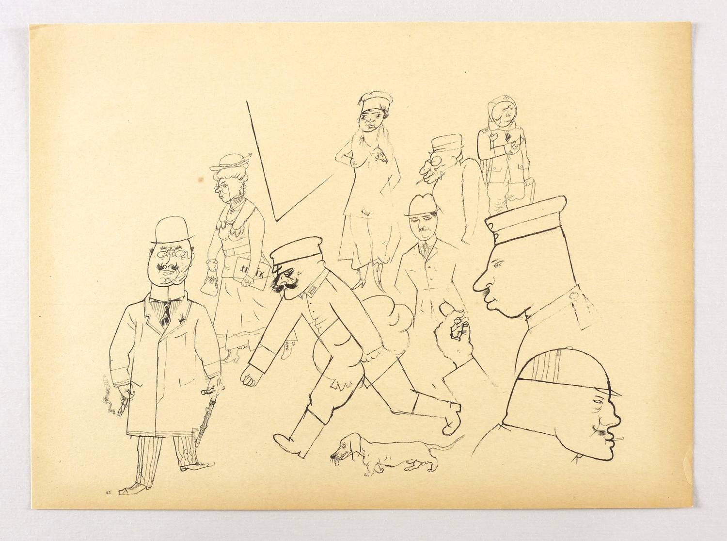 Aus: George Grosz, Ecce homo (Berlin: Malik-Verlag 1923), Bd. Ausgabe C. – Nicht handsigniert. Unten links nummeriert: ″45″. – Papier altersbedingt gebräunt. Guter Zustand.