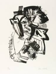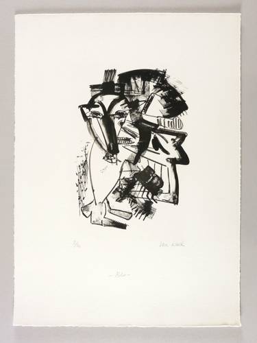 Um 1990. Lithografie / Kreide- & Pinsellithografie, in Schwarz, auf schwerem hellgelbem Hahnemühle-Bütten. – Originale Künstlergrafik, von Vera Kozik. – Auflage Exemplar Nr. 3/30. – 27,7 x 19,8 cm (Darstellung / Druckbild), 54 x 39 cm (Blatt).