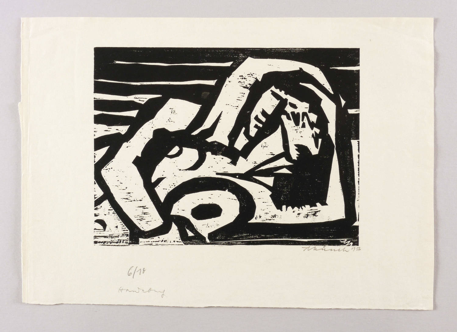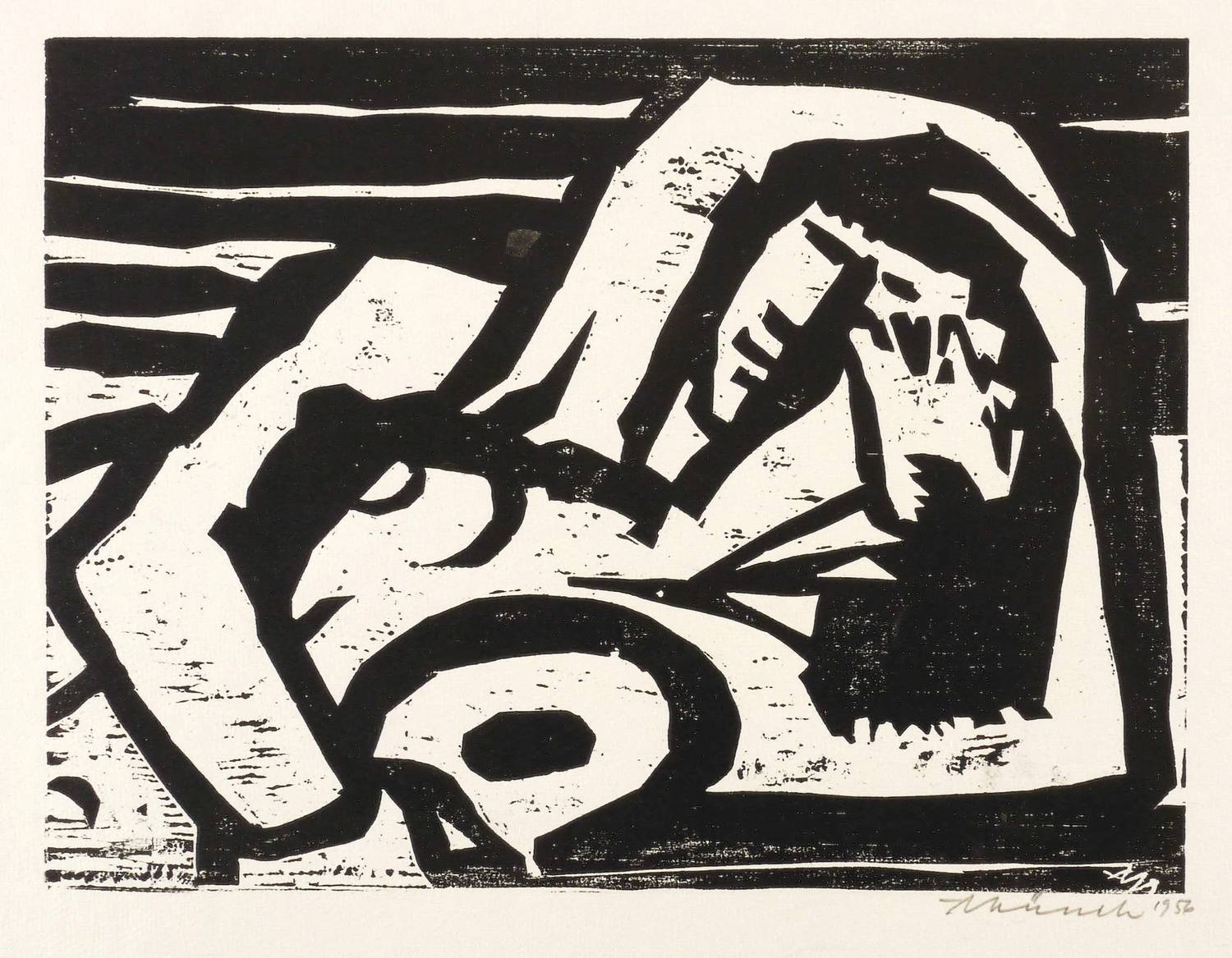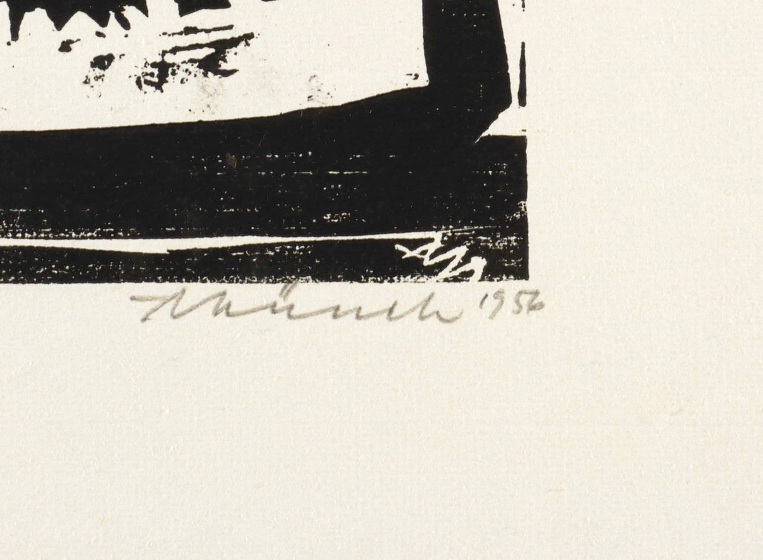 Rechts unten in Bleistift signiert und datiert: ″AMünch 1956″. Links Auflagenbezeichnung. Dazu notiert: ″Handabzug″. Im Druckstock rechts unten Monogramm: ″AM″. – Leichte Knickspuren im Rand. Mäßig guter Zustand.