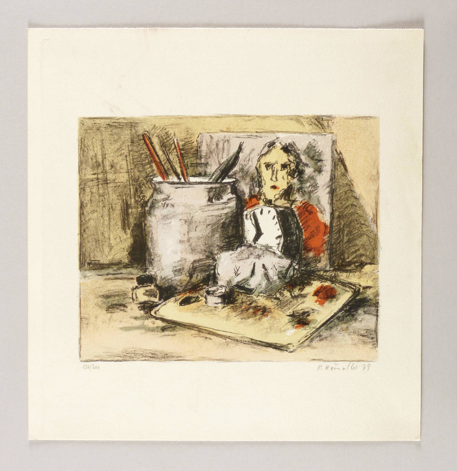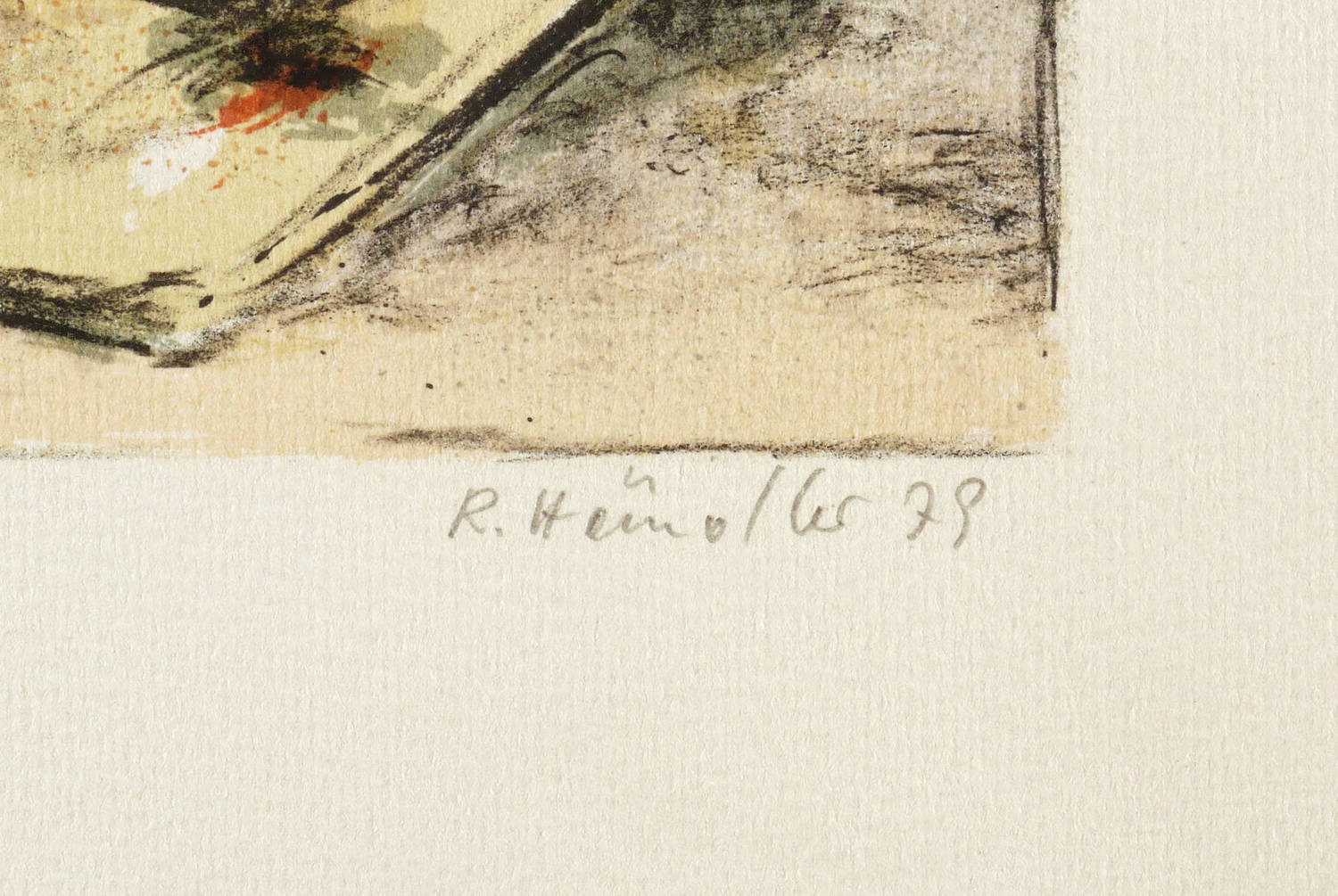 1979. Farboffsetlithografie / Kreide- & Pinsellithografie, in 5 Farben, auf hellem Maschinenkarton. – Originale Künstlergrafik, von Rolf Händler. – Auflage Exemplar Nr. 136/200. – 22,1 x 27,0 cm (Darstellung / Druckbild), 37 x 35 cm (Blatt).
