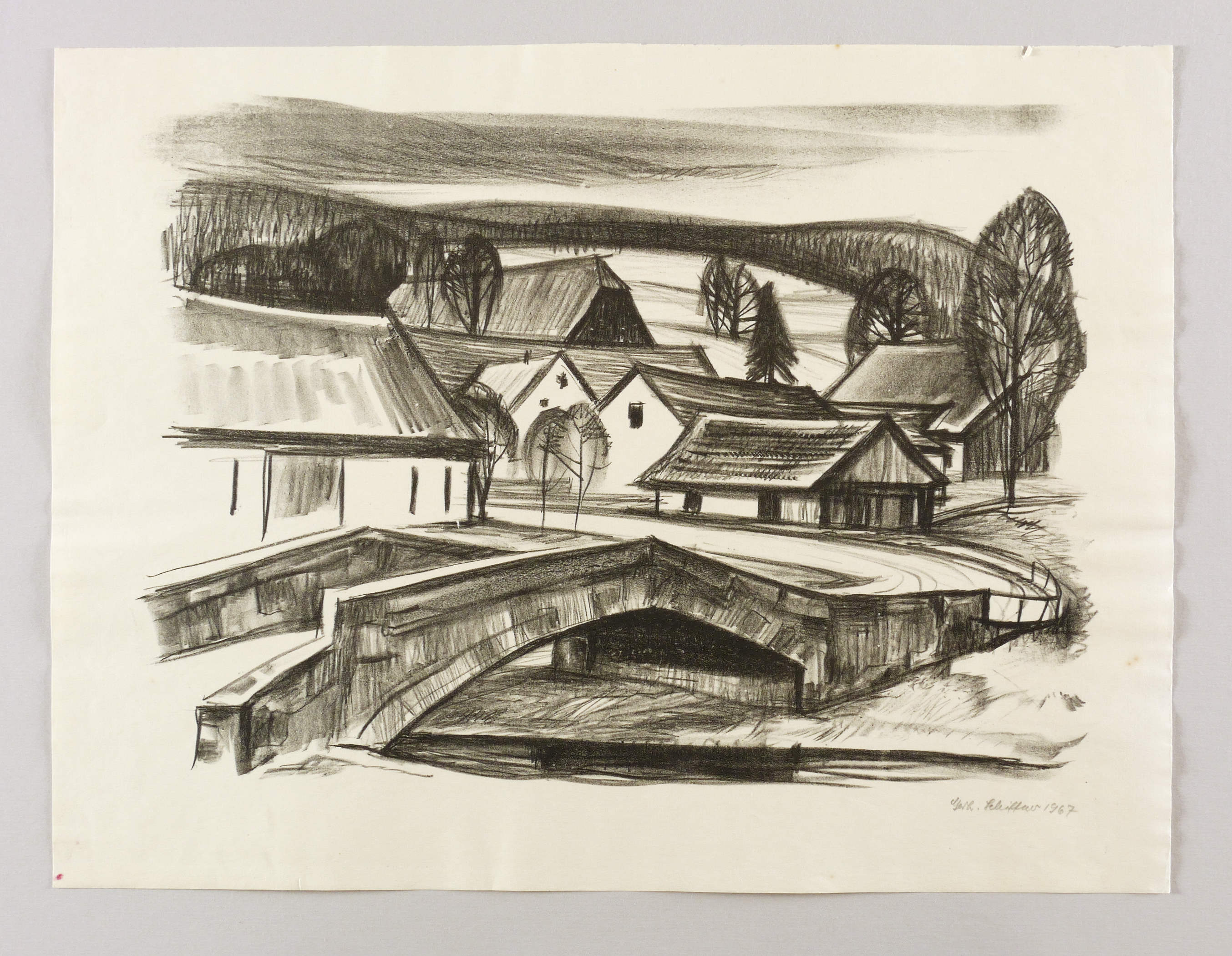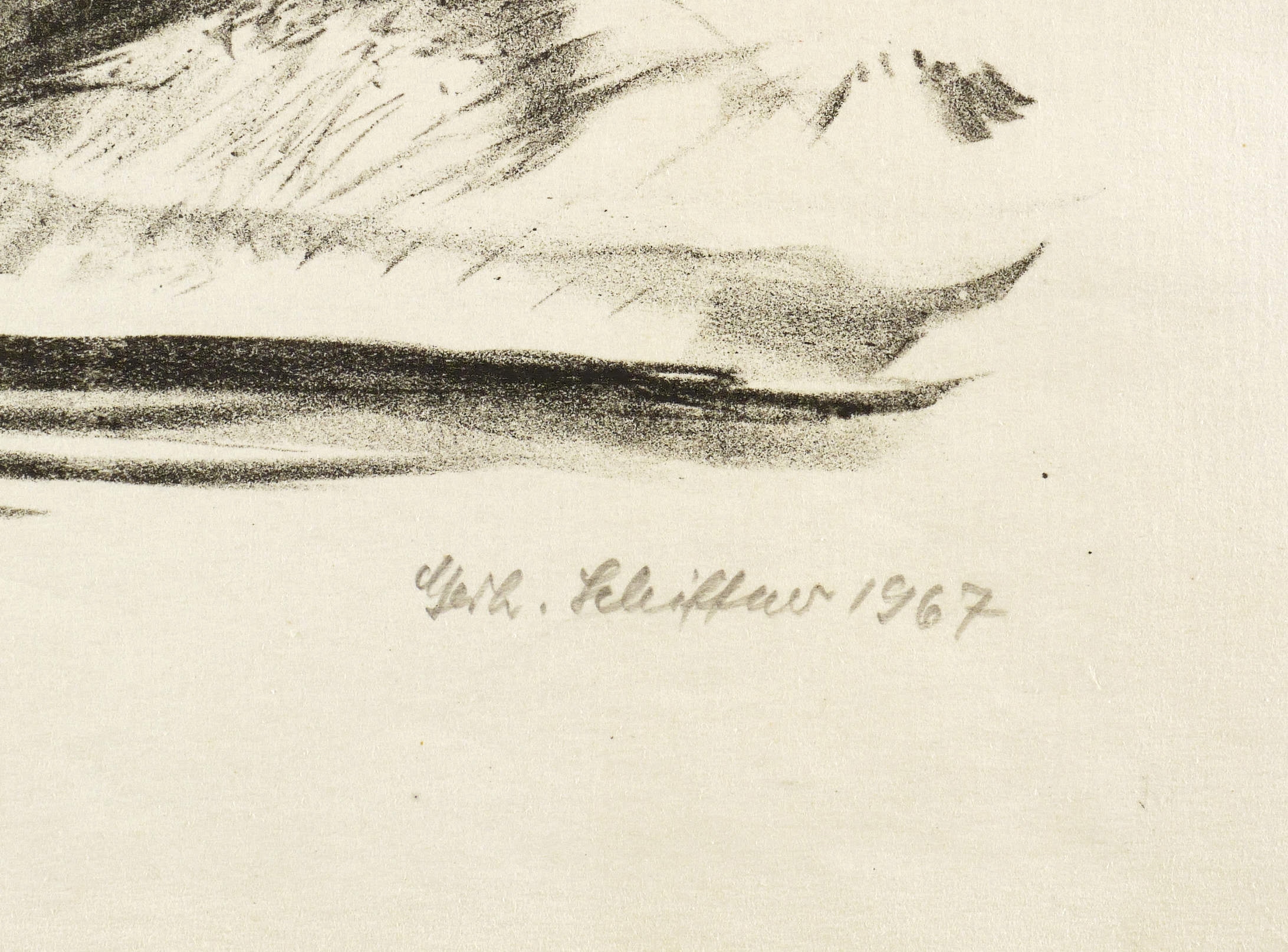 Rechts unten in Bleistift signiert und datiert: ″Gerh. Schiffner 1967″. – Leichte Lagerspuren. Rotes Fleckchen in der linken unteren Blattecke. Blattkanten seitlich geringfügig gewellt. Insgesamt guter Erhaltungszustand.