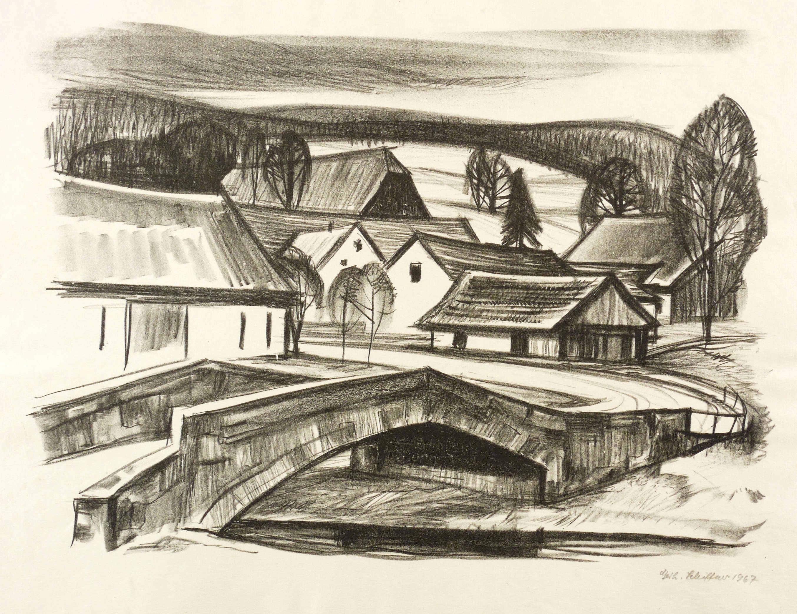 Schiffner, Gerhard. – „Dorf mit steinerner Brücke”.