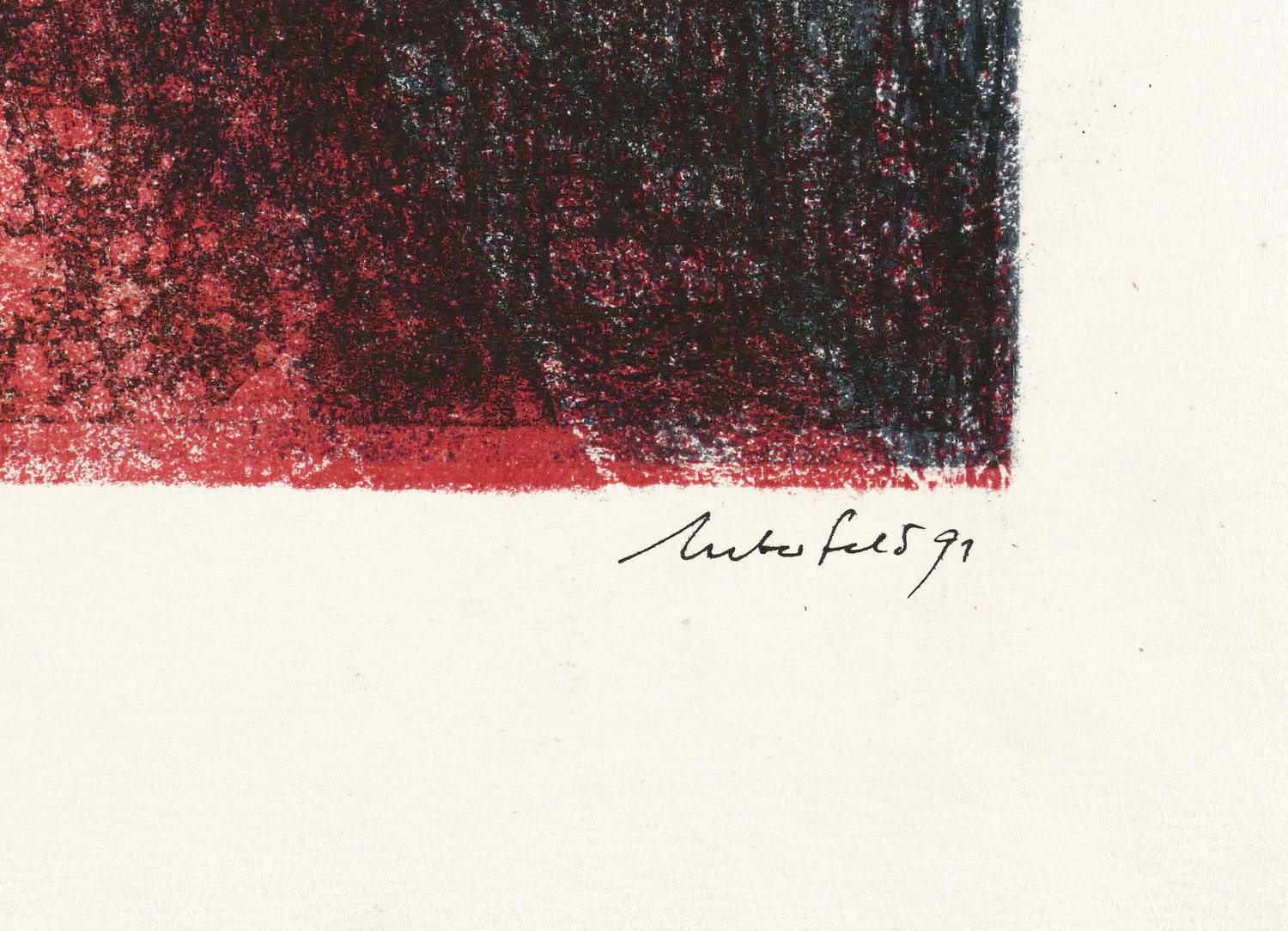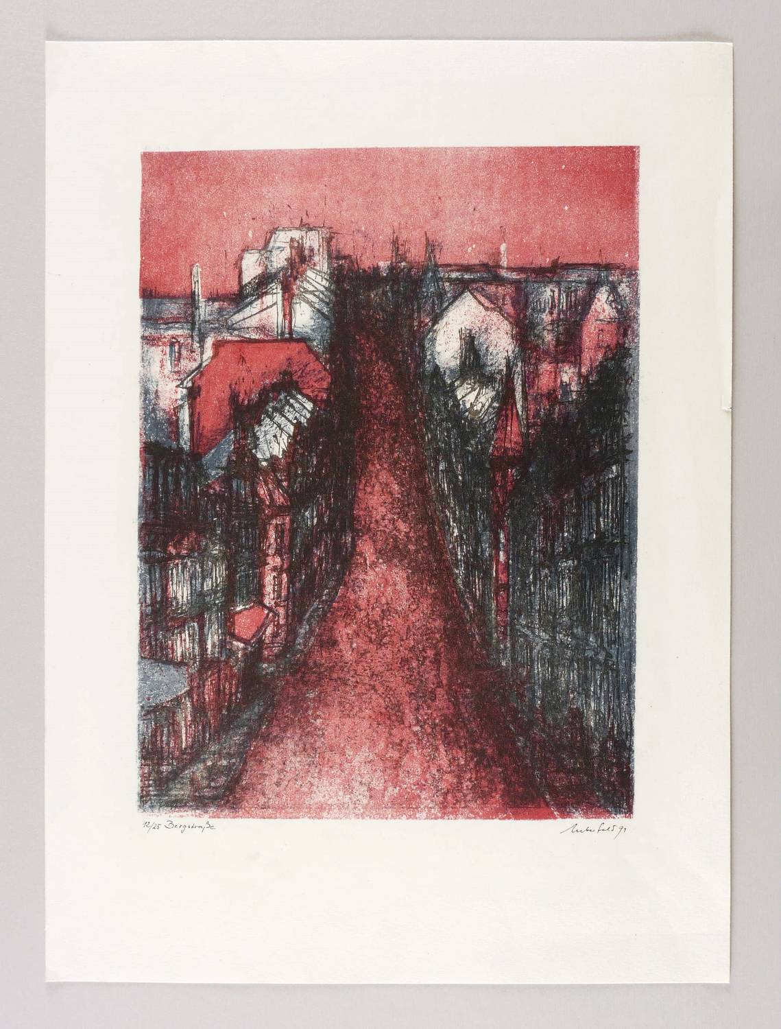 1991. Farblithografie / Pinsel- & Federlithografie, in 3 Farben, auf hartem hellchamois Velin. – Von Bodo Ueberfeld. – Auflage Exemplar Nr. 12/25. – 38,6 x 28,9 cm (Darstellung / Druckbild), 55 x 40 cm (Blatt).