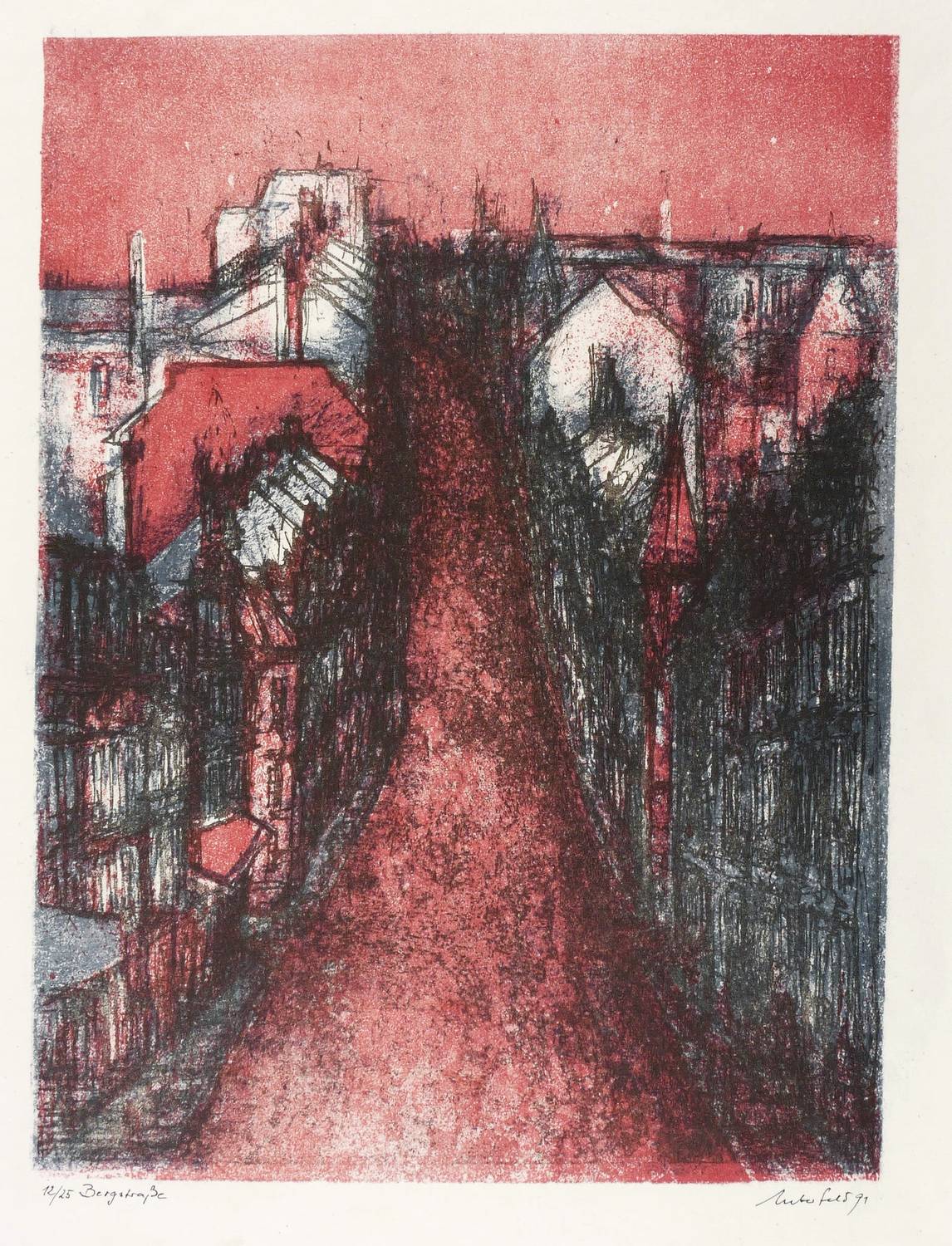 Rechts unten in schwarzer Feder signiert und datiert: ″Ueberfeld 91″. Links Auflagenbezeichnung und Titel. – Guter Zustand.