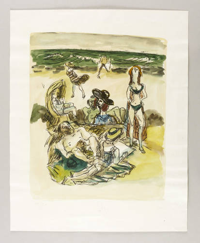 1978. Lithografie / Kreidelithografie, aquarelliert, auf hellem Maschinenbütten. – Originale Künstlergrafik, von Joachim John. – Auflage Exemplar Nr. 67/150. – 42,8 x 35,5 cm (Darstellung), 58 x 46 cm (Blatt).