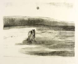 1979. Lithografie / Kreidelithografie, partiell geschabt, in Schwarz, auf hellchamois Weißenborn. – Originale Künstlergrafik, von Nuria Quevedo. – 33,5 x 43,5 cm (Darstellung / Druckbild), 42 x 54 cm (Blatt).