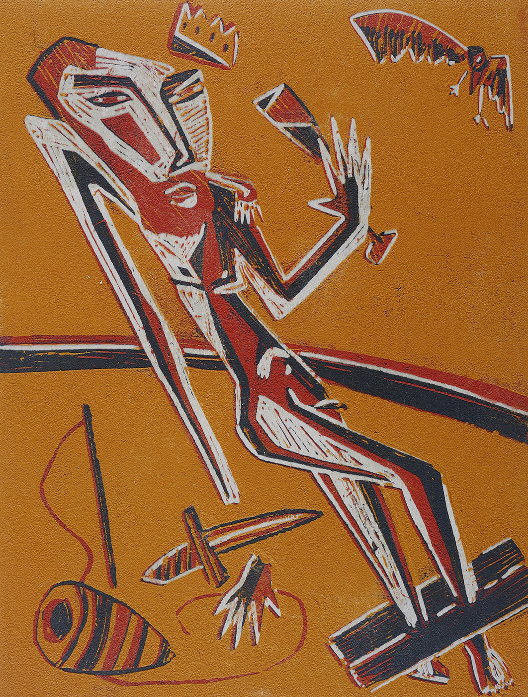 1989. Farbholzschnitt, in 4 Farben, auf Karton. – Von Klaus Süß. – Auflage Exemplar Nr. 21/25. – 40,8 x 30,9 cm (Darstellung / Blatt).