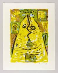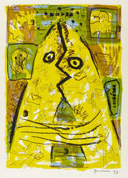 Dieter Zimmermann (*1942 Slupca in Polen, lebt und arbeitet in Brahmow). Deutscher Theatermaler und Grafiker. 1968-74 Studium an der Hochschule für industrielle Formgestaltung Halle (Burg Giebichenstein) bei Hannes H. Wagner und Willi Sitte. Mitglied des VBK der DDR. Ab 1973 freischaffend im sorbischen Seidewinkel, ab 1981 in Brahmow.