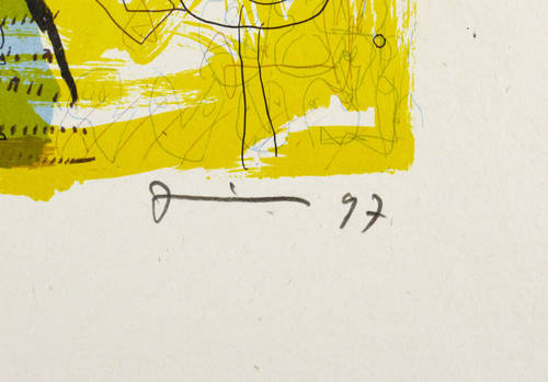 1997. Farblithografie / Pinsellithografie, in 4 Farben, auf hartem hellchamois Velin. – Von Dieter Zimmermann. – 36,1 x 25,2 cm (Darstellung / Druckbild), 45 x 35 cm (Blatt).