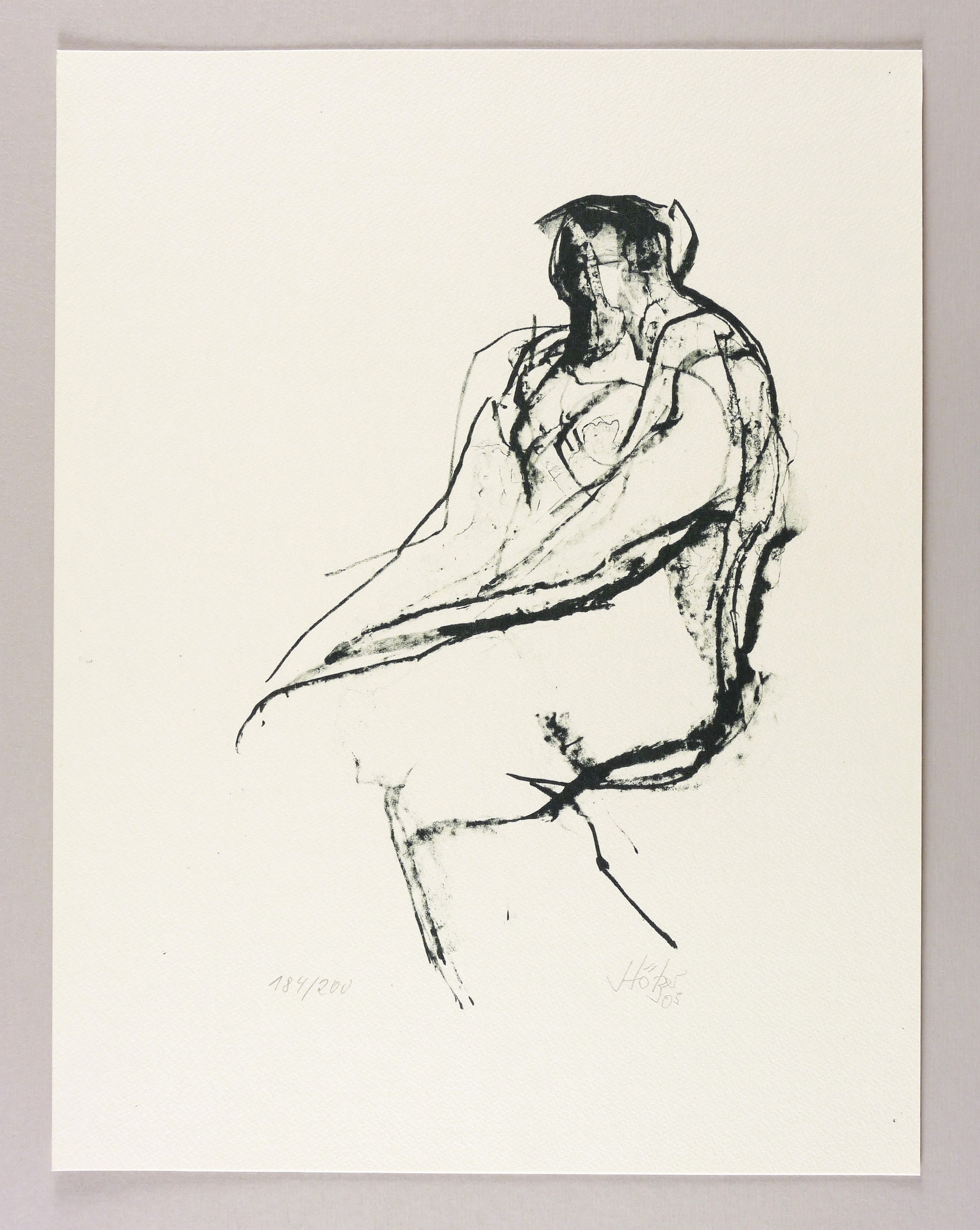 2005. Farbzinkografie / Kreide- & Pinselzinkografie, in Blauschwarz, auf festem hellgelbem Karton. – Originale Künstlergrafik, von Werner Stötzer. – Auflage Exemplar Nr. 184/200. – 32,2 x 22,7 cm (Darstellung / Druckbild), 45 x 35 cm (Blatt).