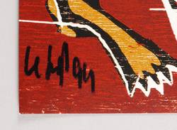 1994. Farbholzschnitt, in Rot, Orange & Schwarz, auf hellchamois Velin. – Von Klaus Süß. – Auflage Exemplar Nr. 22/50. – 49,4 x 36,4 cm (Darstellung / Blatt).