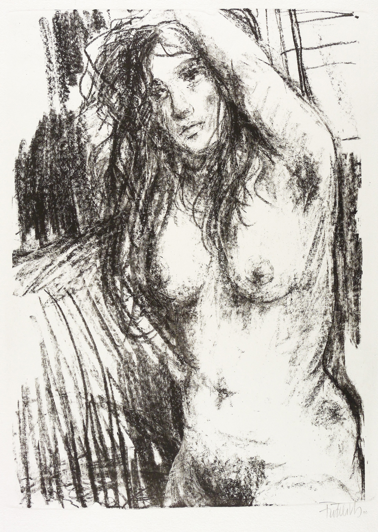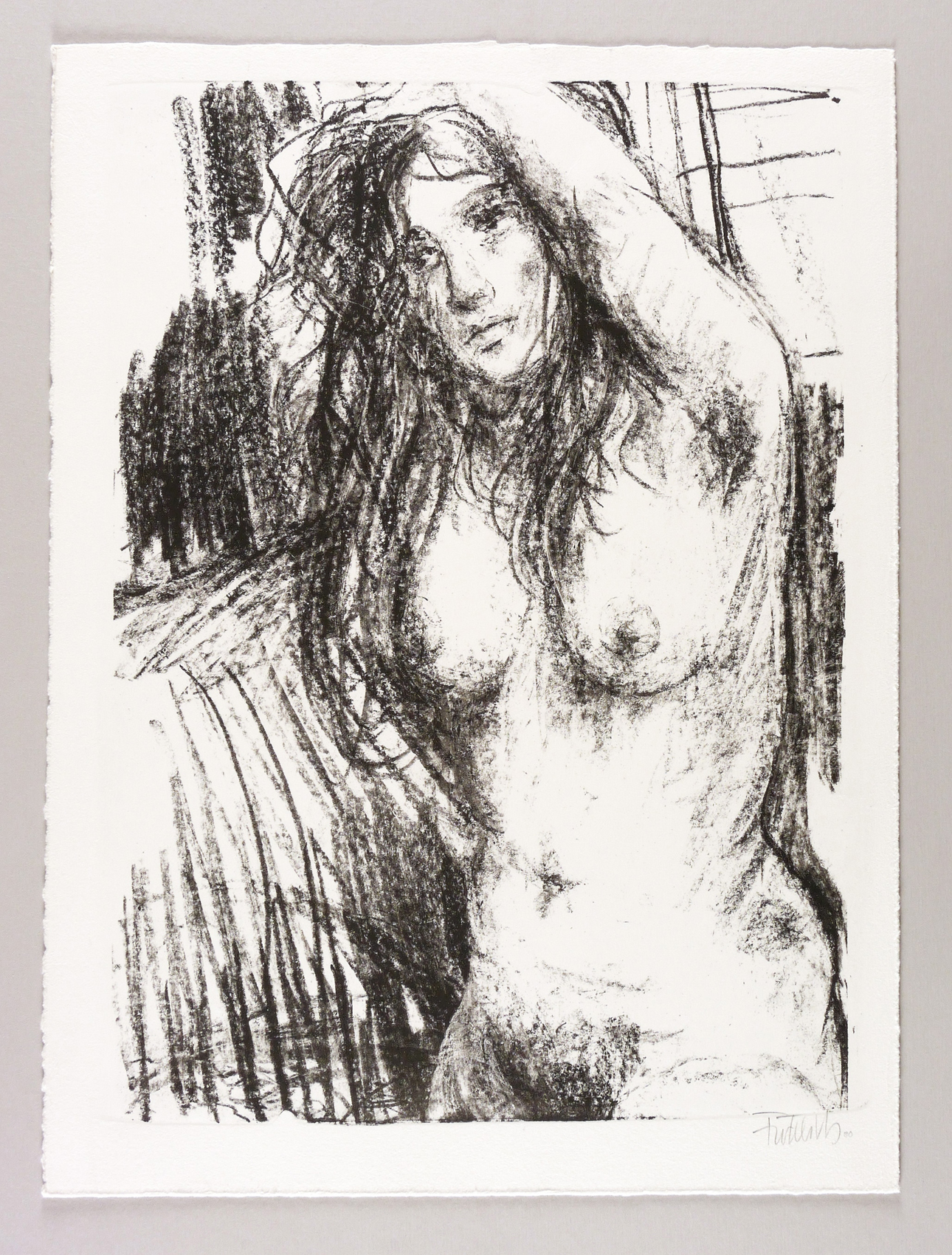 1990. Lithografie / Kreidelithografie, in Schwarz, auf schwerem hellchamois Bütten. – Originale Künstlergrafik, von Fritz Fröhlich. – 48,4 x 34,3 cm (Darstellung / Druckbild), 54 x 40 cm (Blatt).