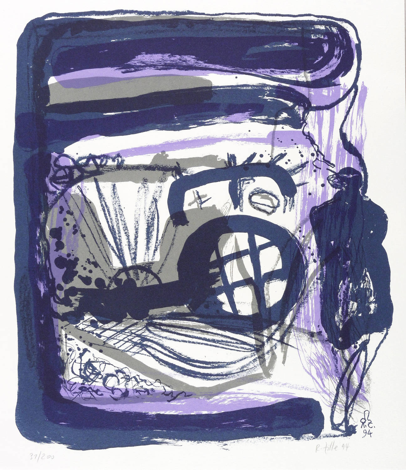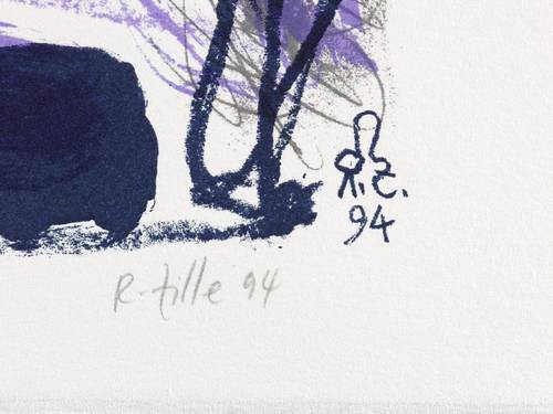1994. Farblithografie / Pinsellithografie, in 4 Farben, auf feinem hellchamois Velinkarton. – Originale Künstlergrafik, von Rainer Zille. – Auflage Exemplar Nr. 31/200. – 45,4 x 39,2 cm (Darstellung / Stein), 52 x 43 cm (Blatt).