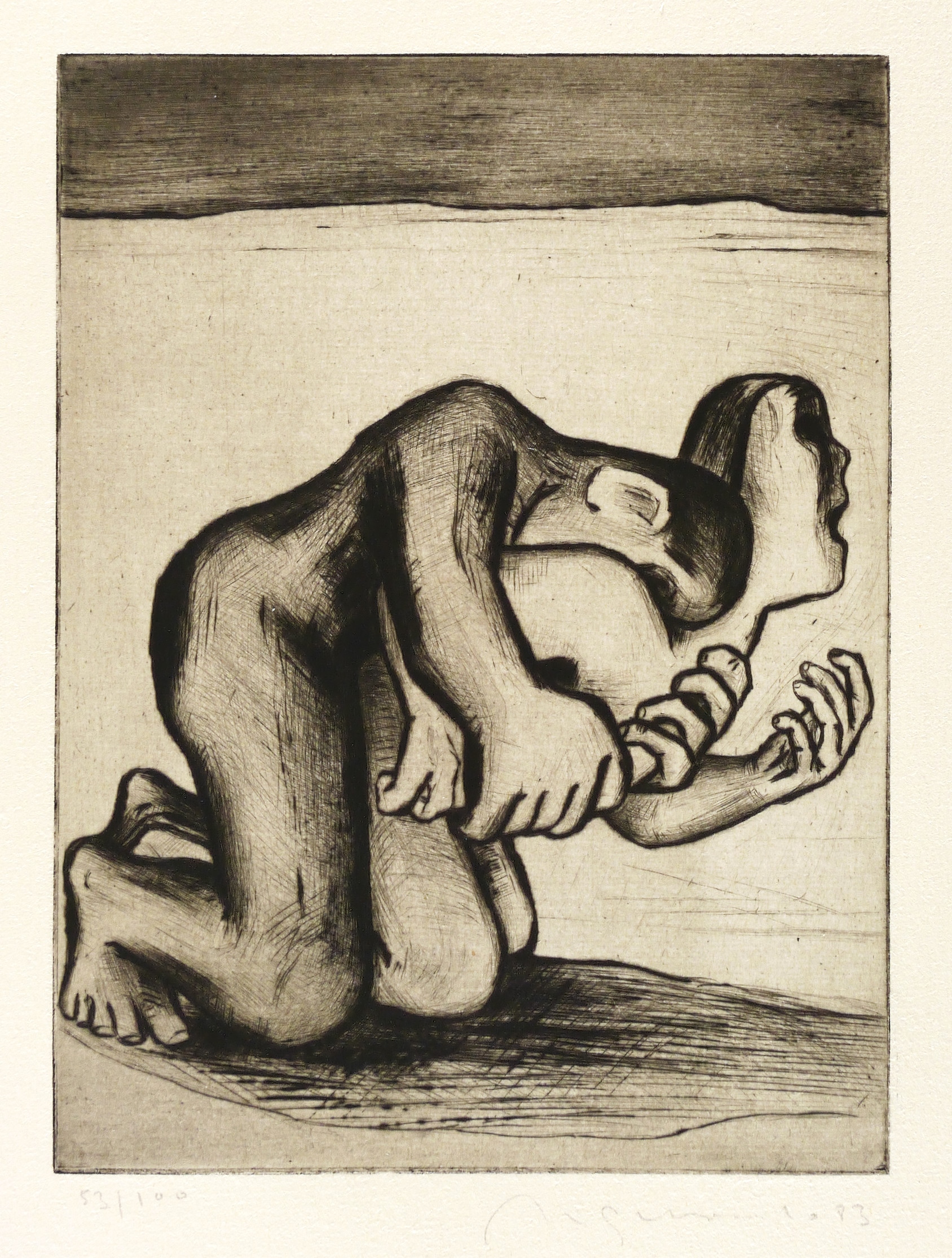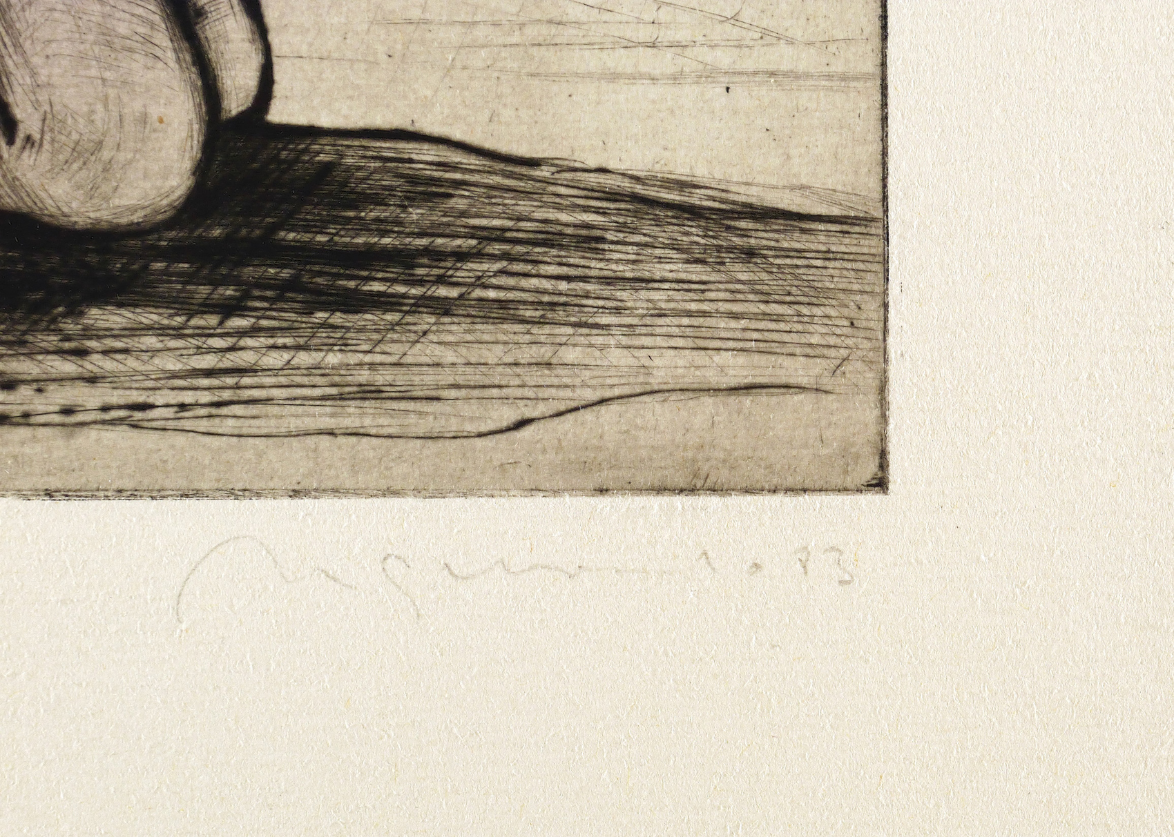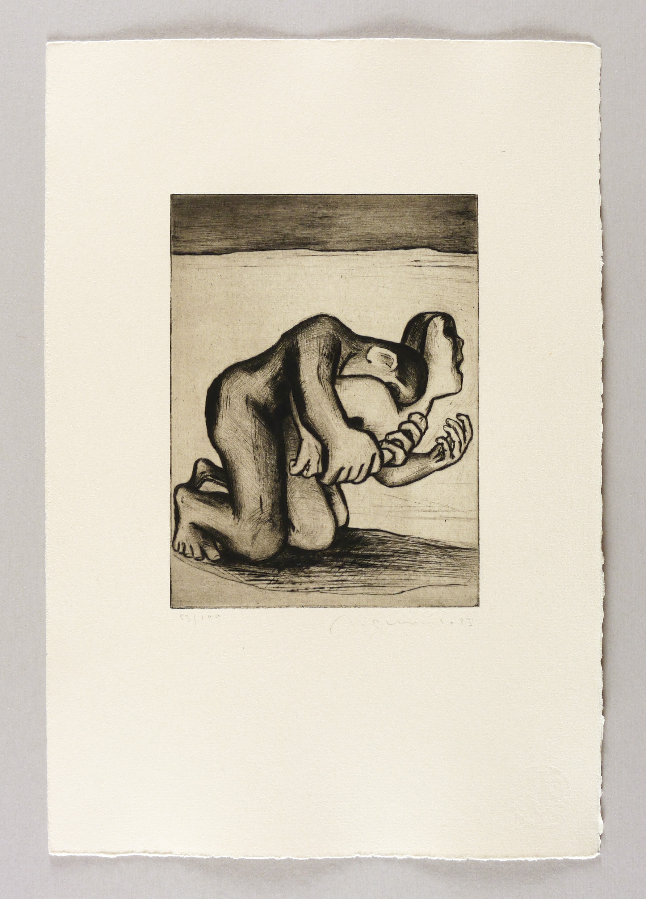 1983. Radierung / Kaltnadel, mit Plattenton, in Schwarz, auf chamois Hahnemühle. – Originale Künstlergrafik, von Nuria Quevedo. – Auflage Exemplar Nr. 20/100. – 20,0 x 14,9 cm (Darstellung / Platte), 40 x 27 cm (Blatt).