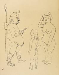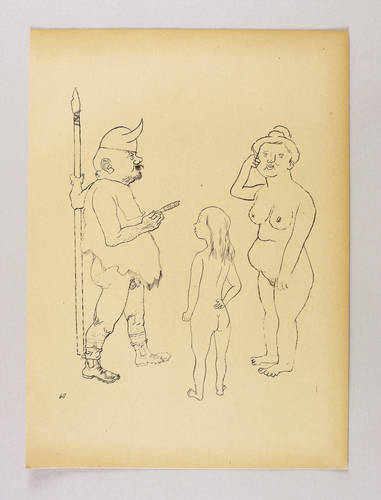 George Grosz (1893 Berlin - 1959 Berlin). Deutsch-amerikanischer Maler, Grafiker und Karikaturist. Bekannt sind vor allem seine der Neuen Sachlichkeit zugerechneten, sozial- bzw. gesellschaftskritischen Gemälde und Zeichnungen. Typische Sujets sind die Großstadt, ihre Abseitigkeiten (Mord, Perversion und Gewalt) sowie die Klassengegensätze, die sich in ihr zeigen. In seinen Karikaturen verspottet er die herrschenden Kreise der Weimarer Republik, greift soziale Gegensätze auf und kritisiert insbesondere Wirtschaft, Politik, Militär und Klerus.