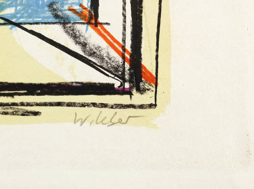 Um 1980. Farblithografie / Kreide- & Pinsellithografie, in 6 Farben, auf glattem Karton. – Originale Künstlergrafik, von Wolfgang Leber. – 30,8 x 39,2 cm (Darstellung / Druckbild), 35 x 49 cm (Blatt).