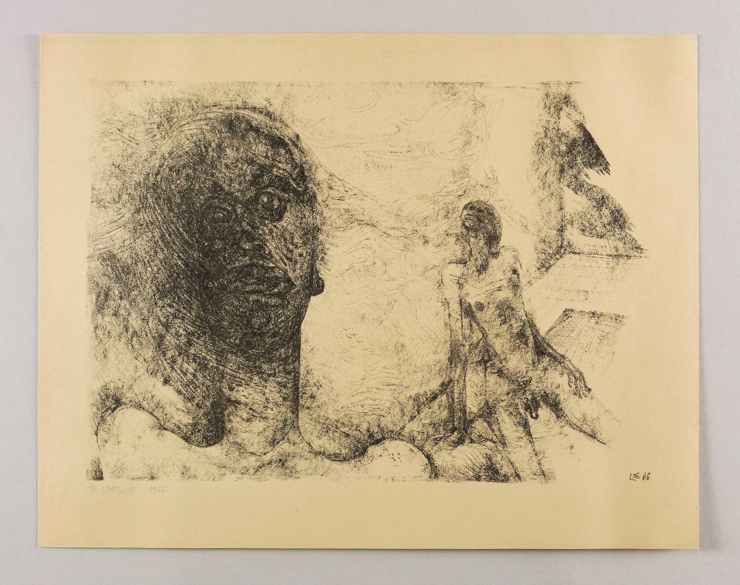 Links unten in Bleistift signiert und datiert: ″R. LOEWIG 1966″. Im Stein rechts unten Signet und Jahr: ″LOE 66″. Verso weiter bezeichnet. – Gut erhalten. Rückseite etwas angeschmutzt. Immerhin mäßig guter Zustand.