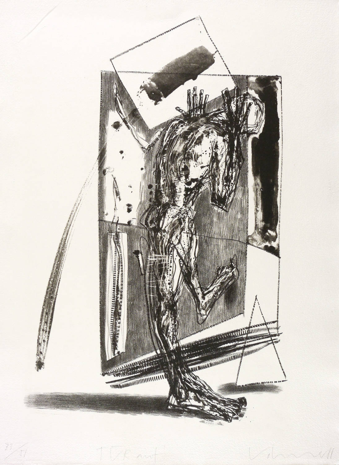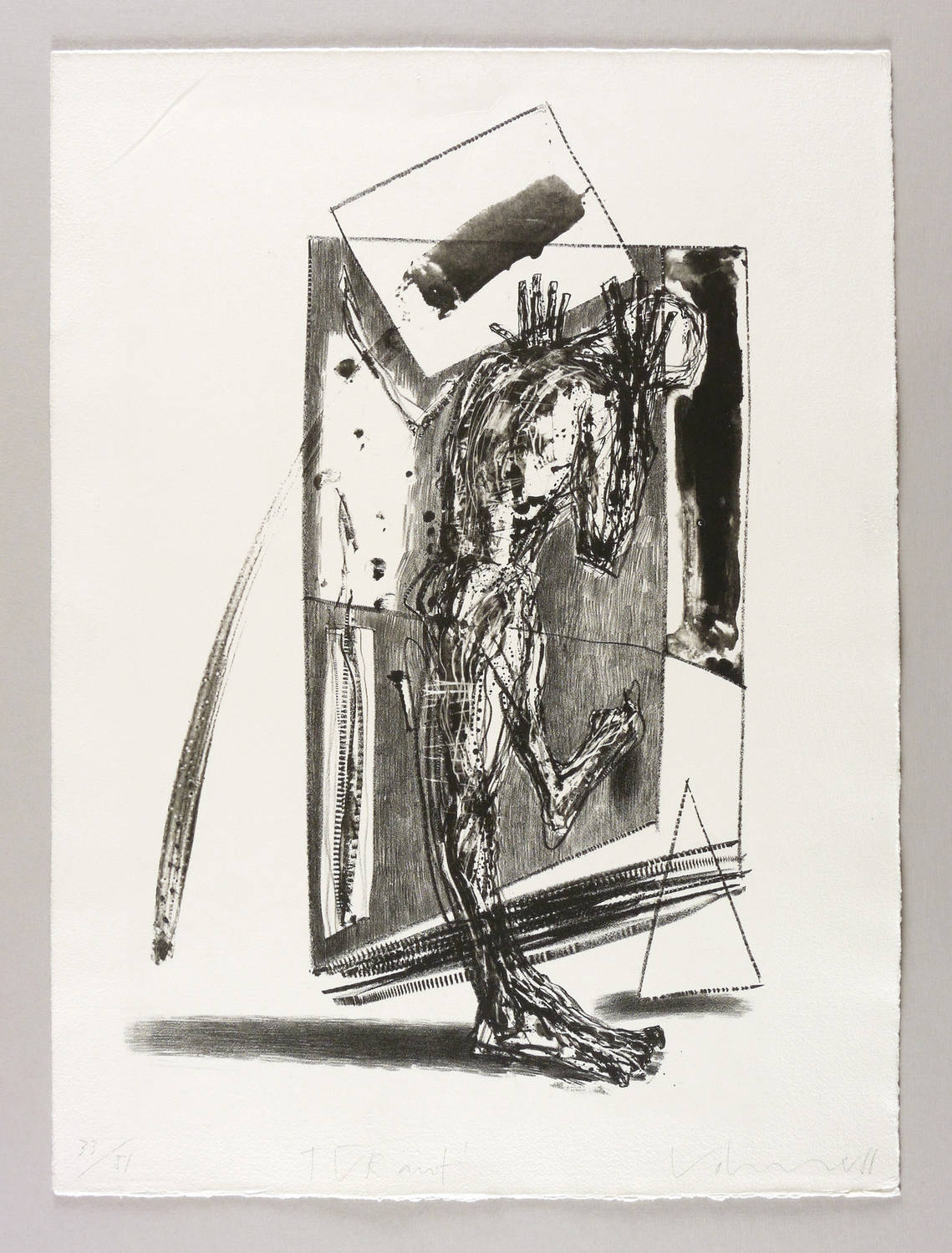 1988. Lithografie / Kreide- & Pinsellithografie, in Schwarz, auf hellchamois Büttenpapier. – Originale Künstlergrafik, von Steffen Volmer. – Auflage Exemplar Nr. 33/51. – 46,2 x 29,7 cm (Darstellung / Druckbild), 54 x 40 cm (Blatt).