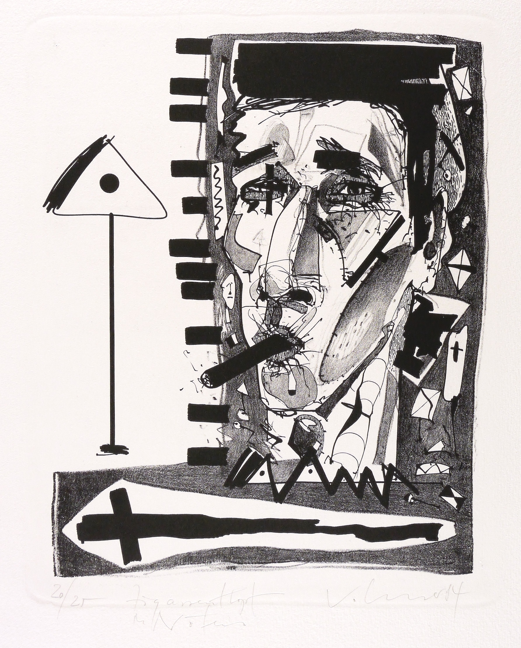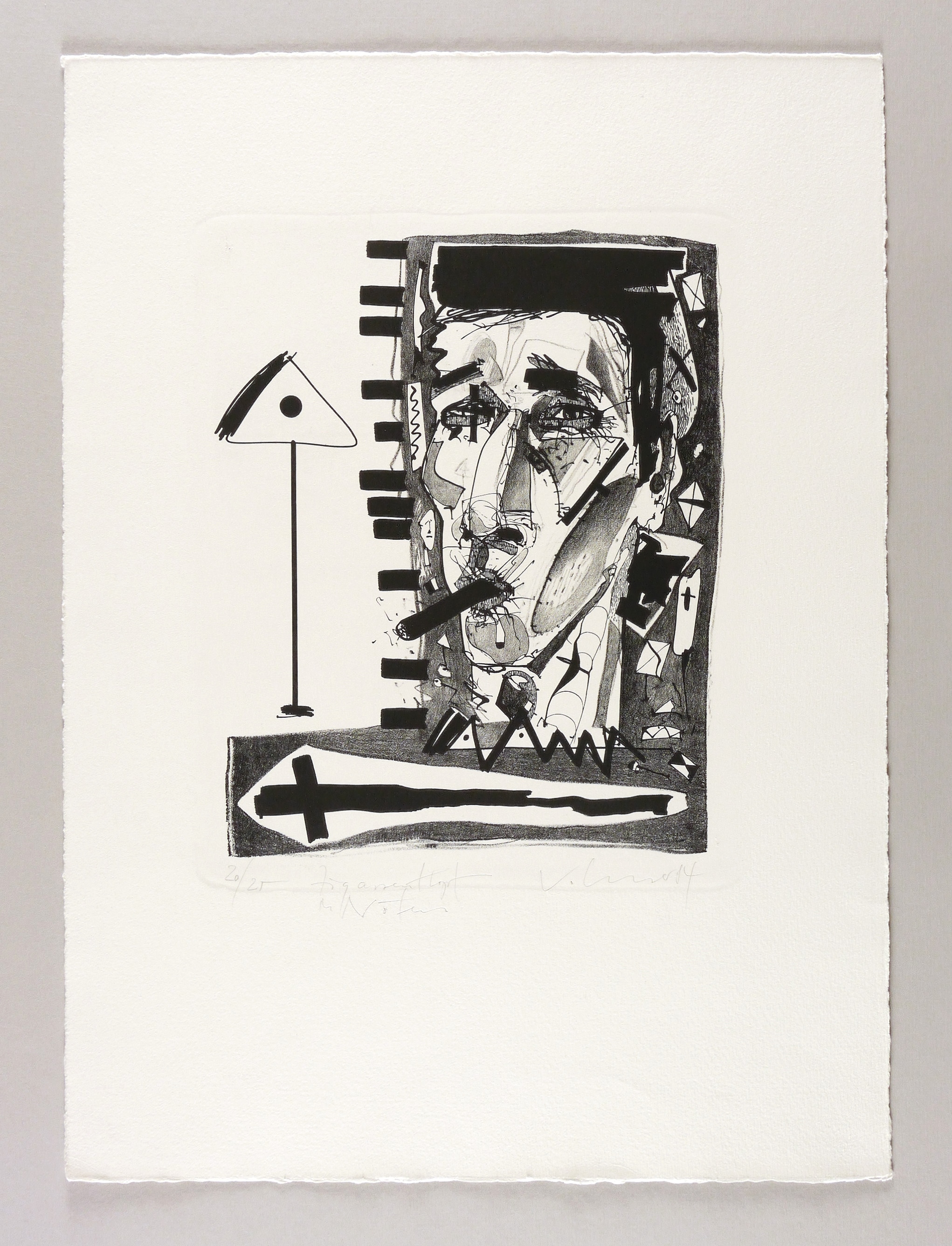 1984. Lithografie / Kreide- & Pinsellithografie, in Schwarz, auf hellchamois Büttenpapier. – Originale Künstlergrafik, von Steffen Volmer. – Auflage Exemplar Nr. 20/25. – 29,8 x 24,5 cm (Darstellung / Druckbild), 54 x 40 cm (Blatt).